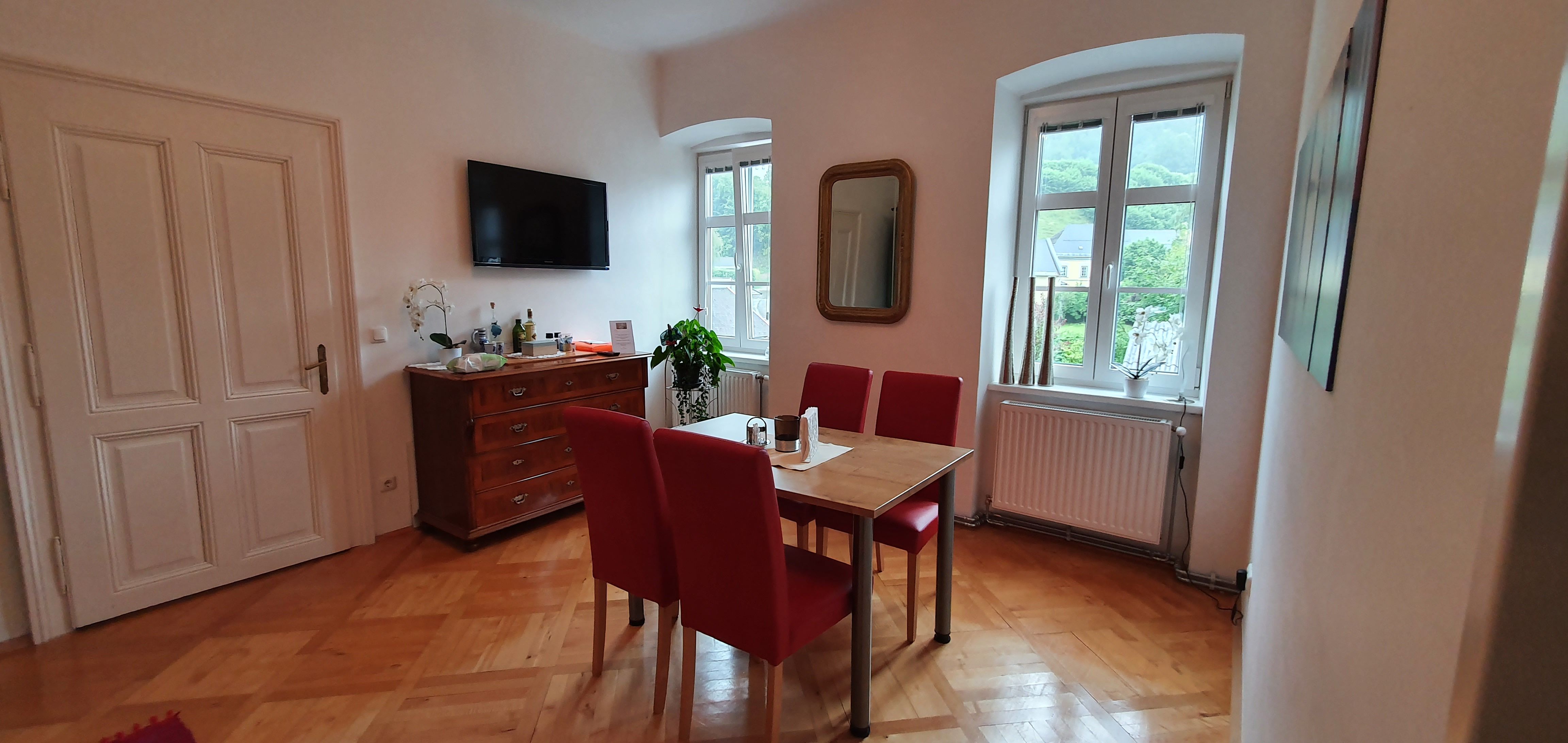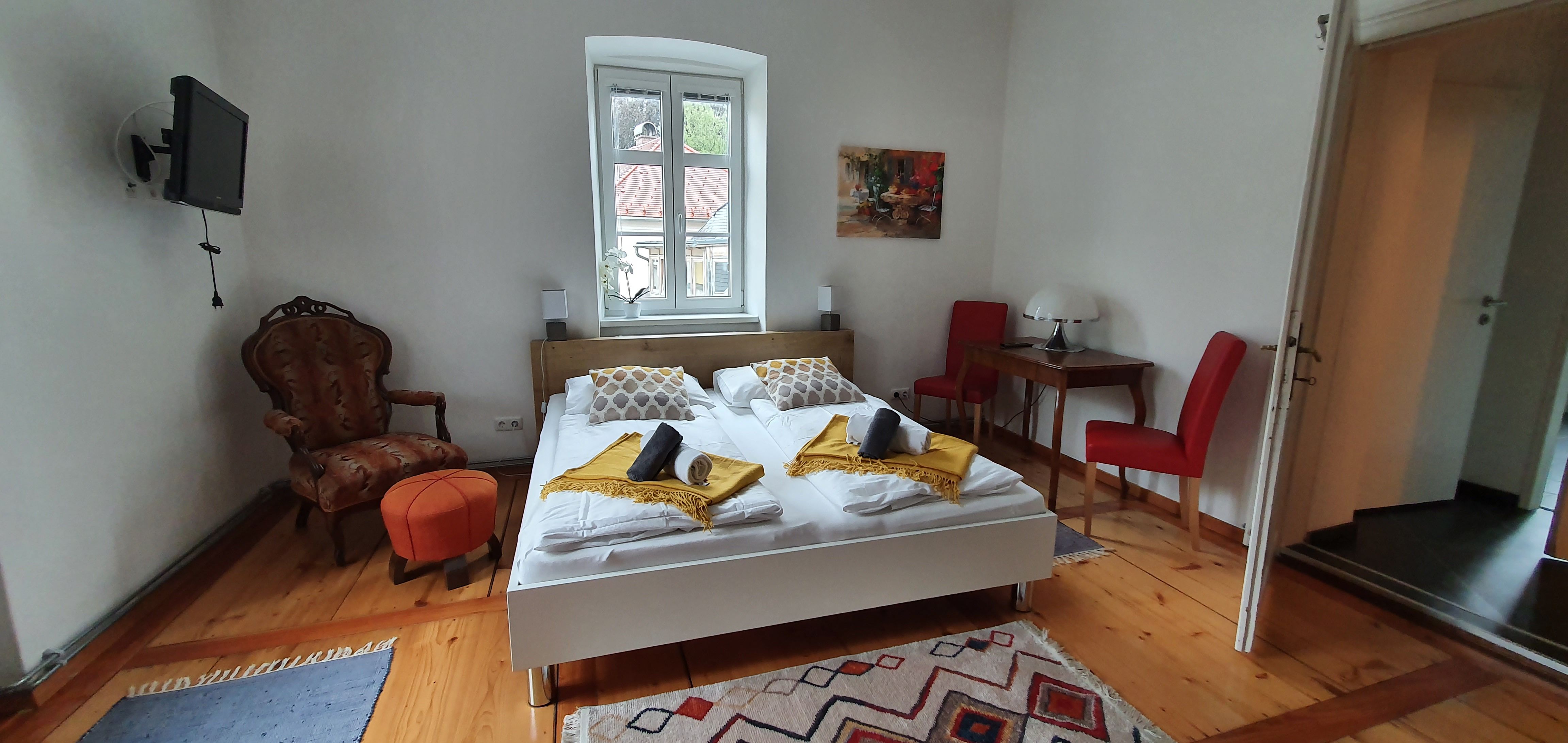 The old flair of the house has been preserved in the apartments and combined with modern furnishings. Spacious bathrooms, well-equipped kitchens, comfortable beds and flat screens offer every comfort. Free WLAN and sufficient parking spaces are also a matter of course.