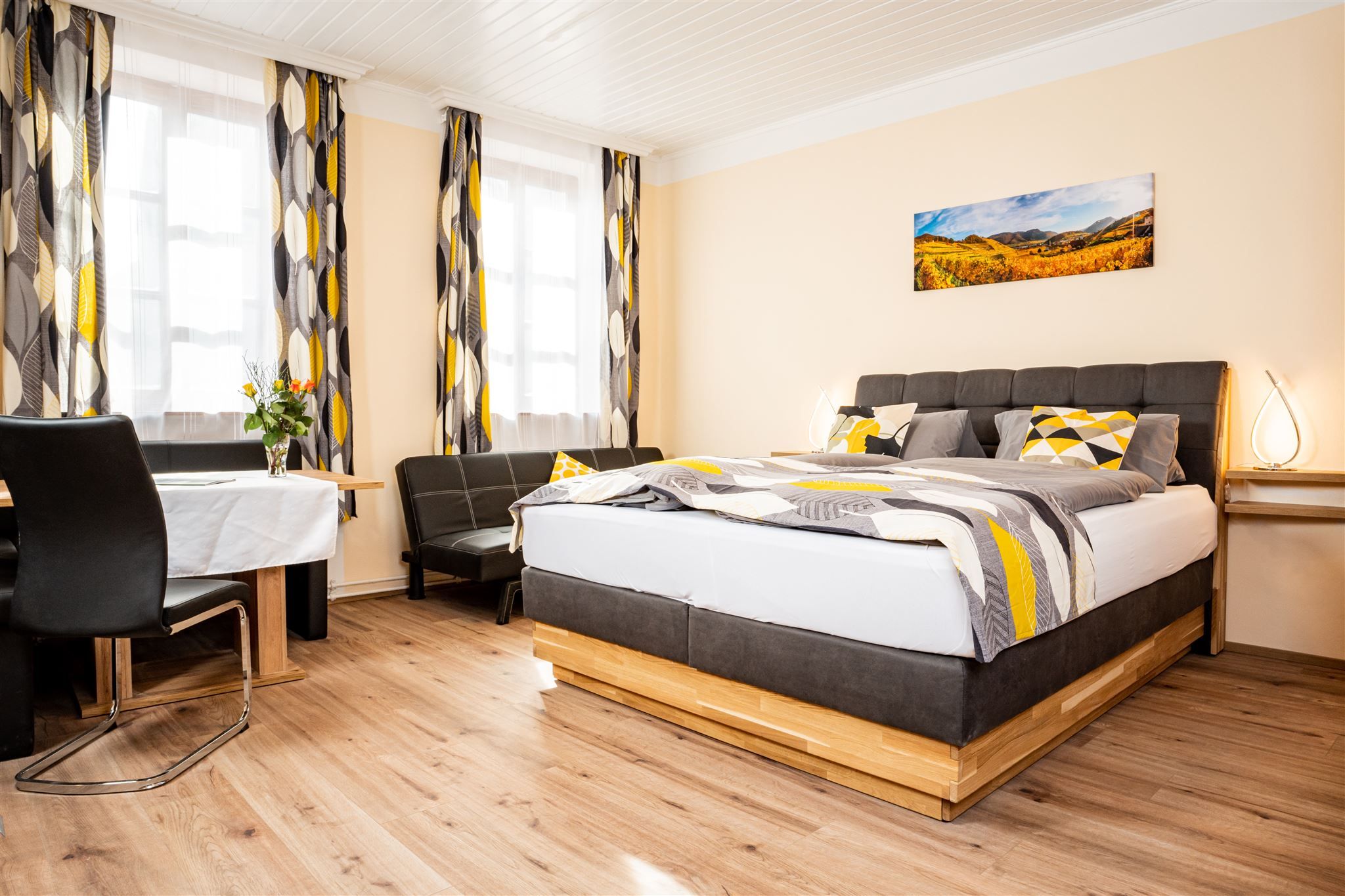 The guest rooms are lovingly decorated according to Wachau themes - for example "Spitz", "Weißenkirchen", "Dürnstein", "Marille", "Wein" or "Kirsche". Each room is individually furnished and creates a cozy atmosphere to relax in after a day exploring the region.