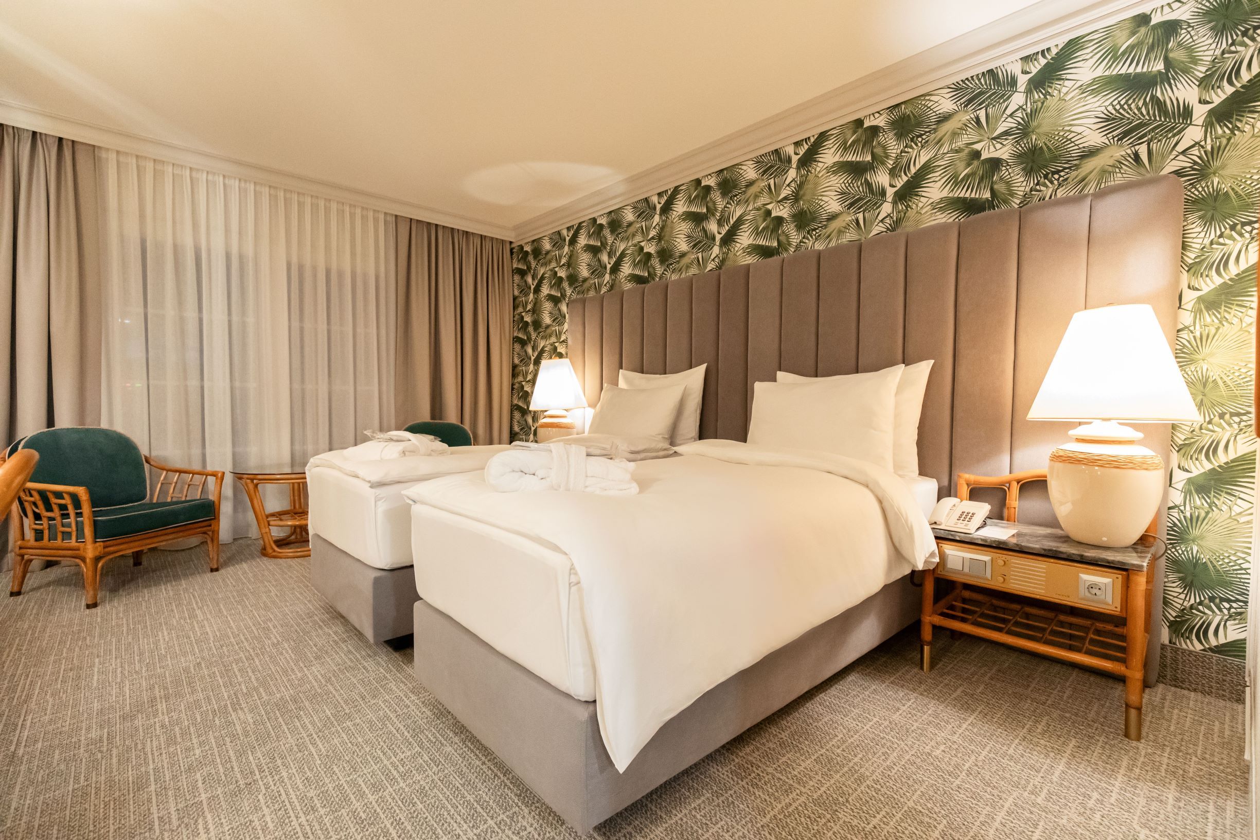 Inside, it offers space for 461 comfortable 4-star rooms and suites, the modern 3,500m² congress center, numerous restaurants and bars, as well as a spacious wellness and bathing area.