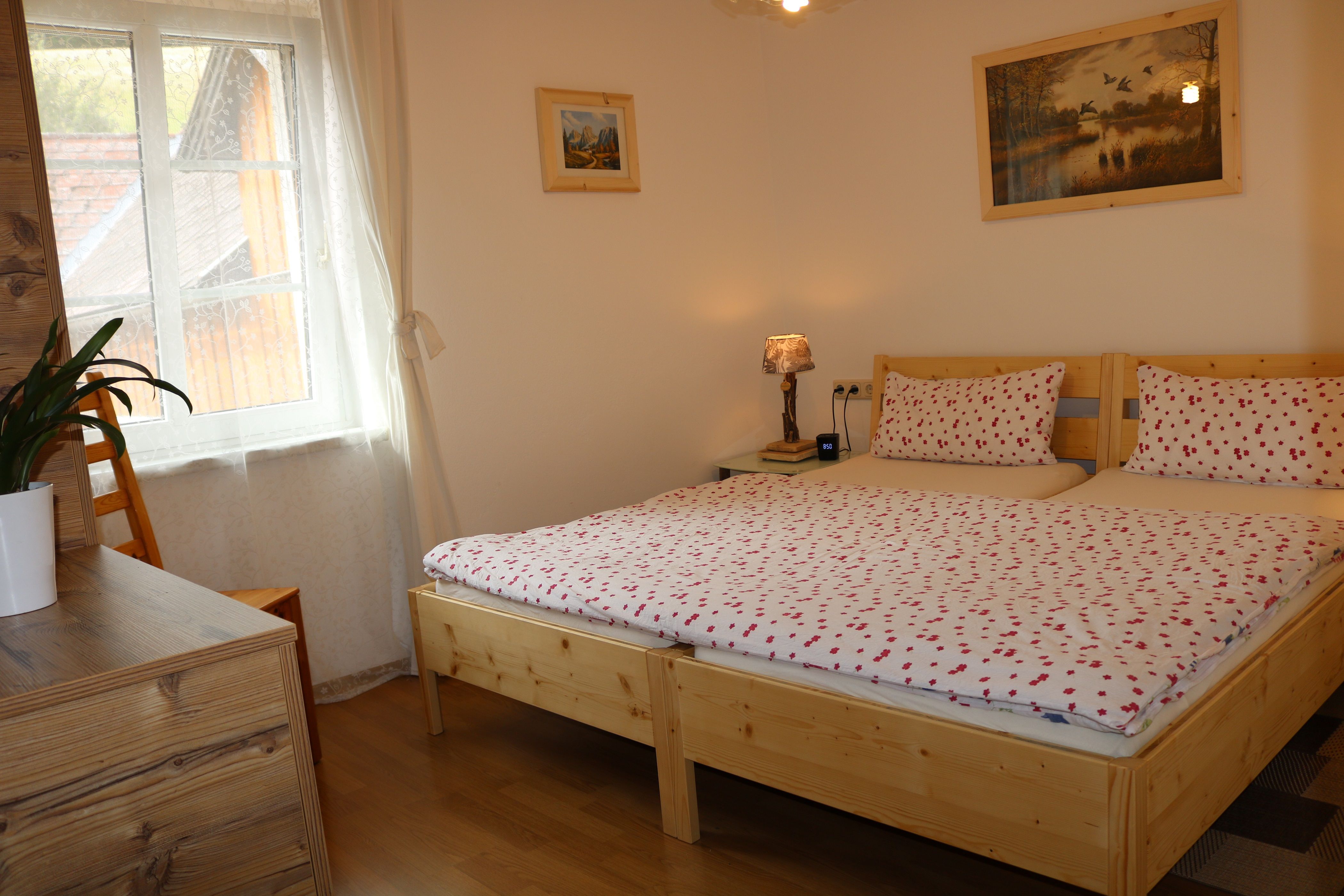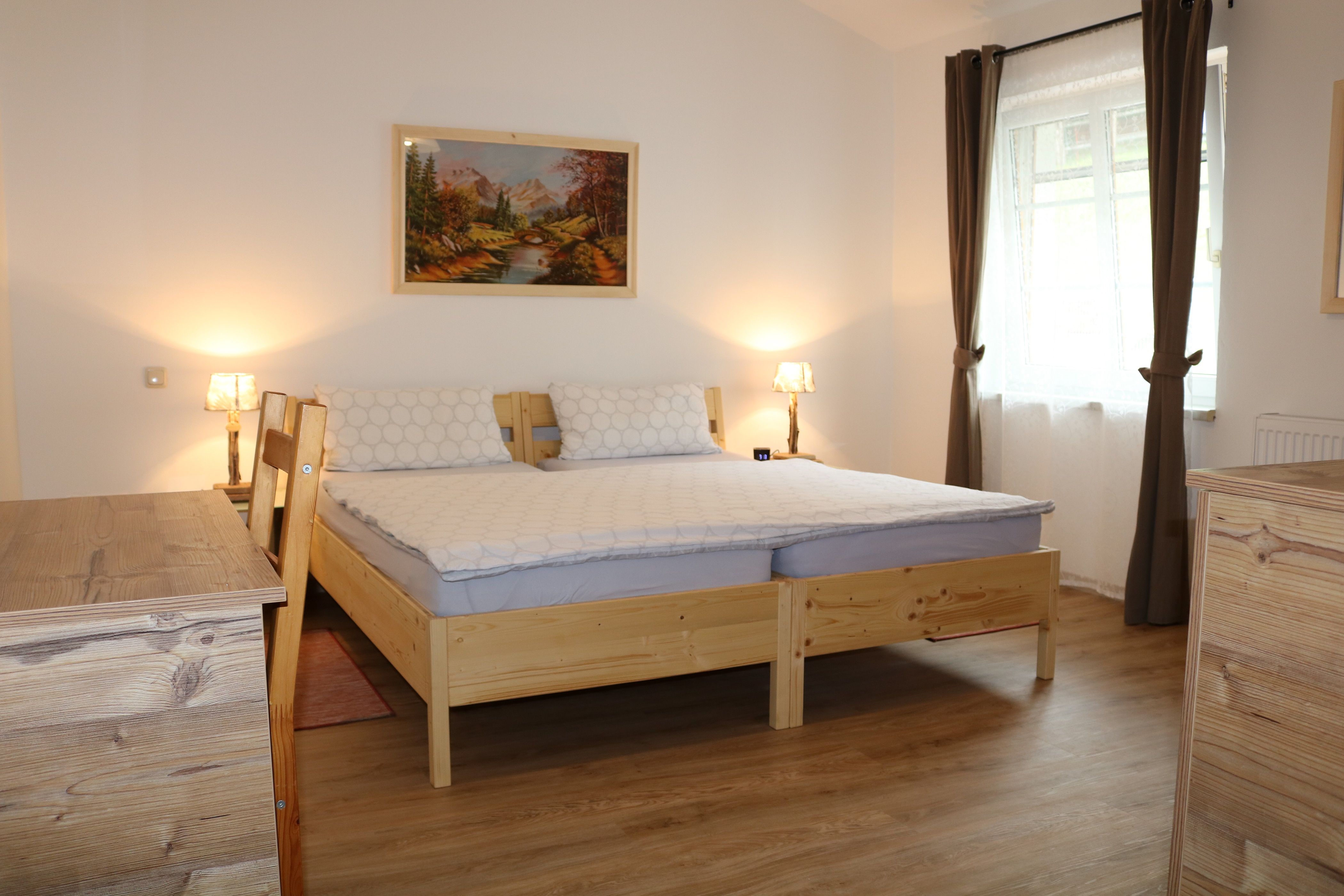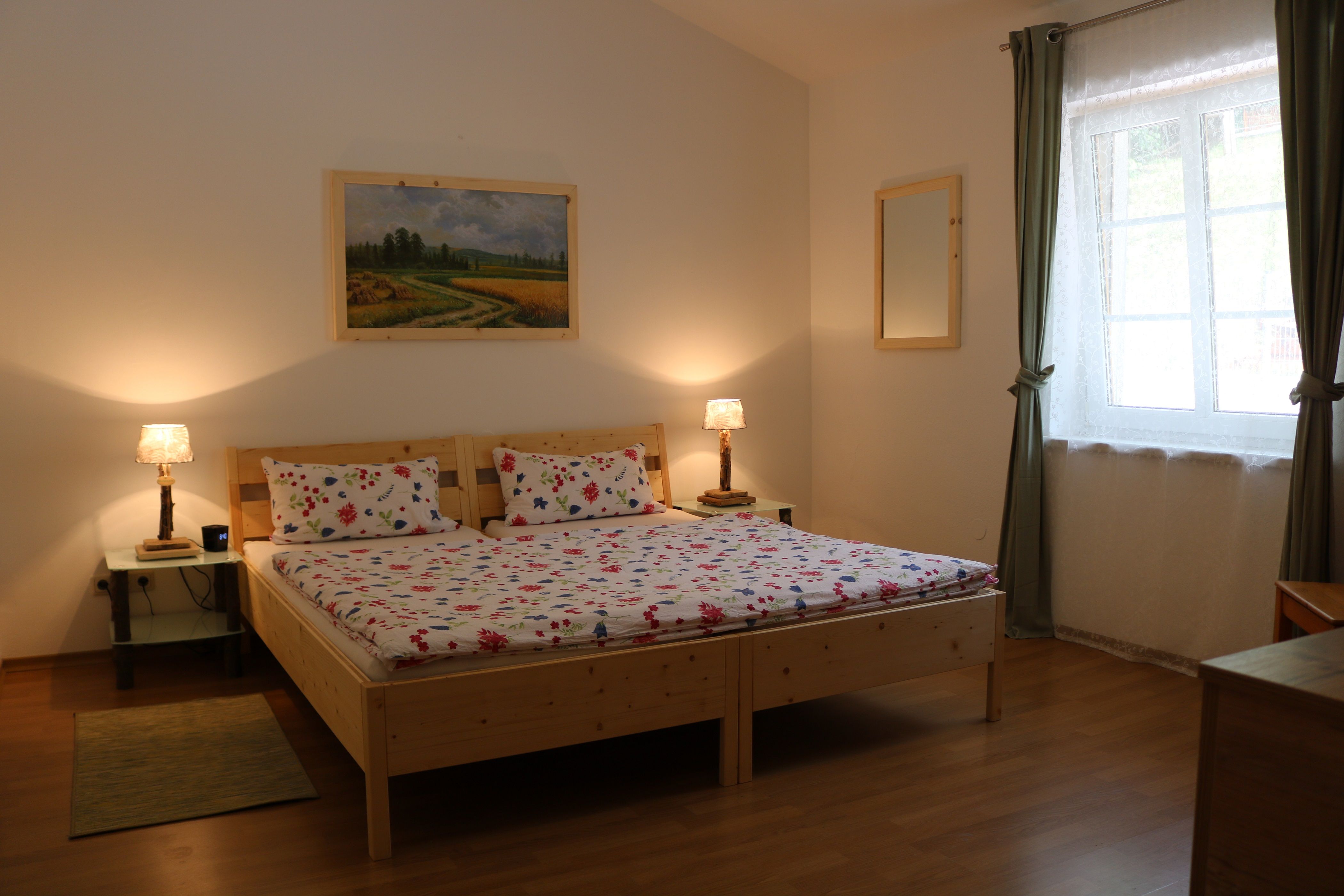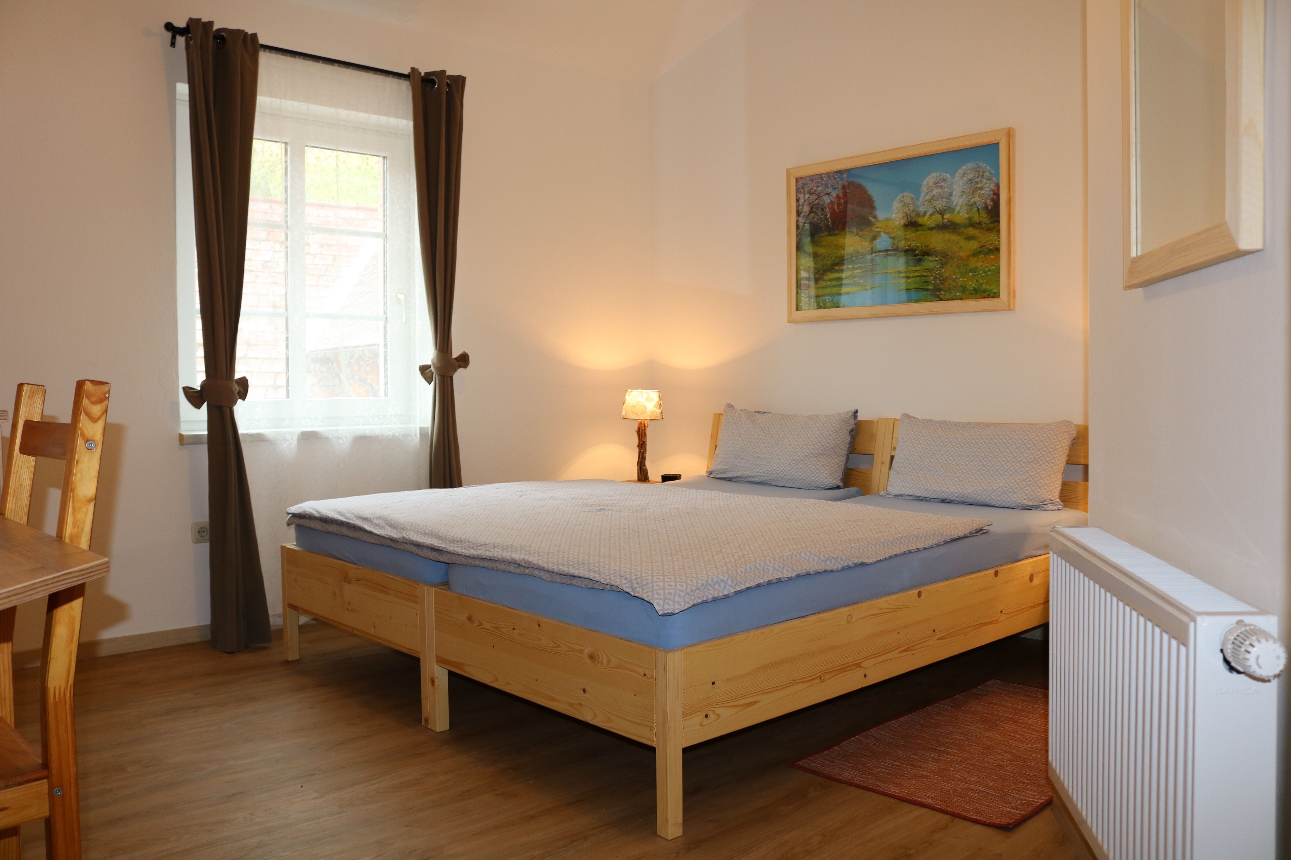 The organic farm has two 80 m2, fully equipped vacation apartments that can accommodate four or six people. They are ideal for families who like to cook for themselves. It is possible to purchase game from the nearby game reserve and buy directly from the farmer.