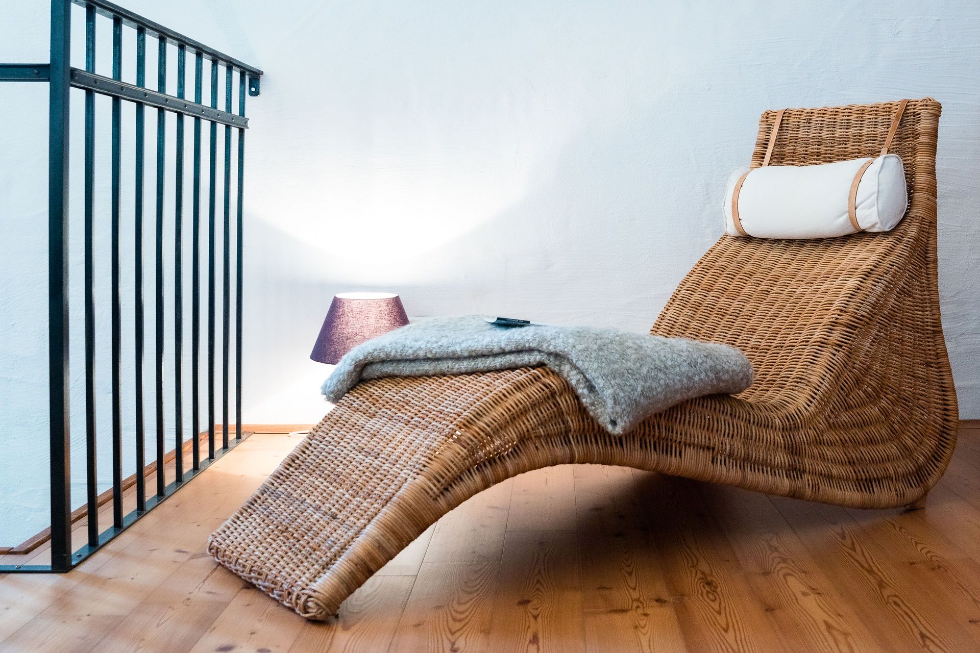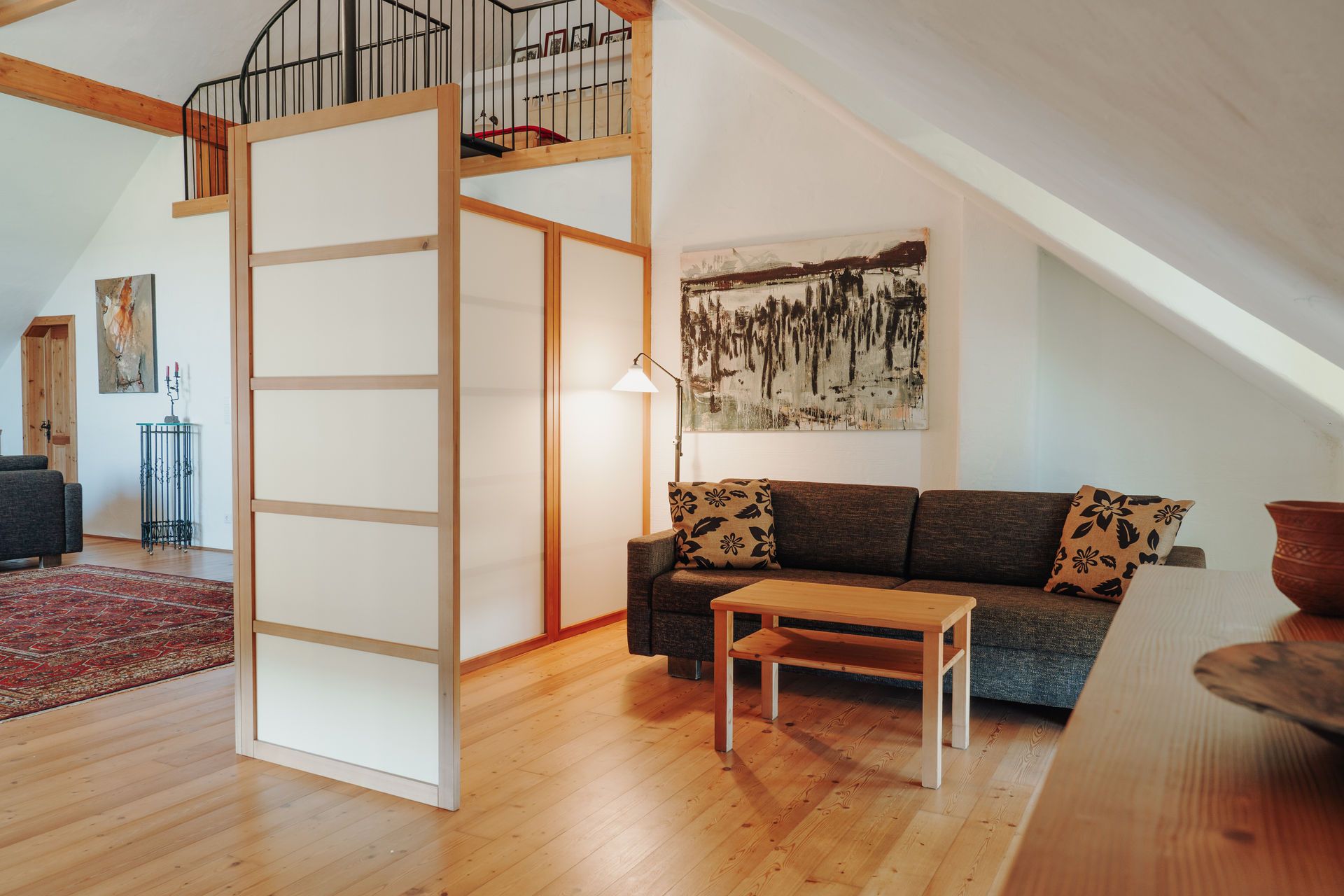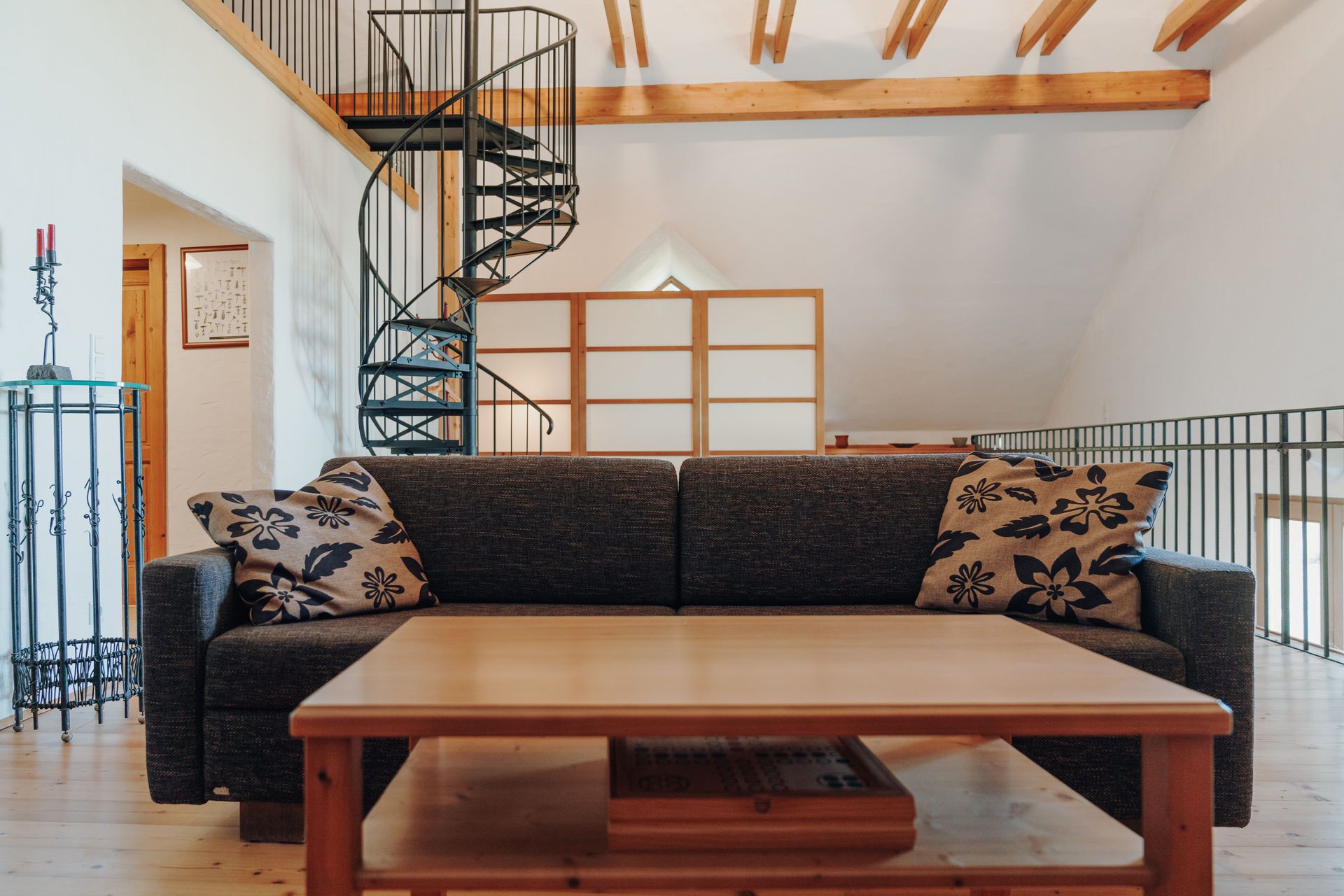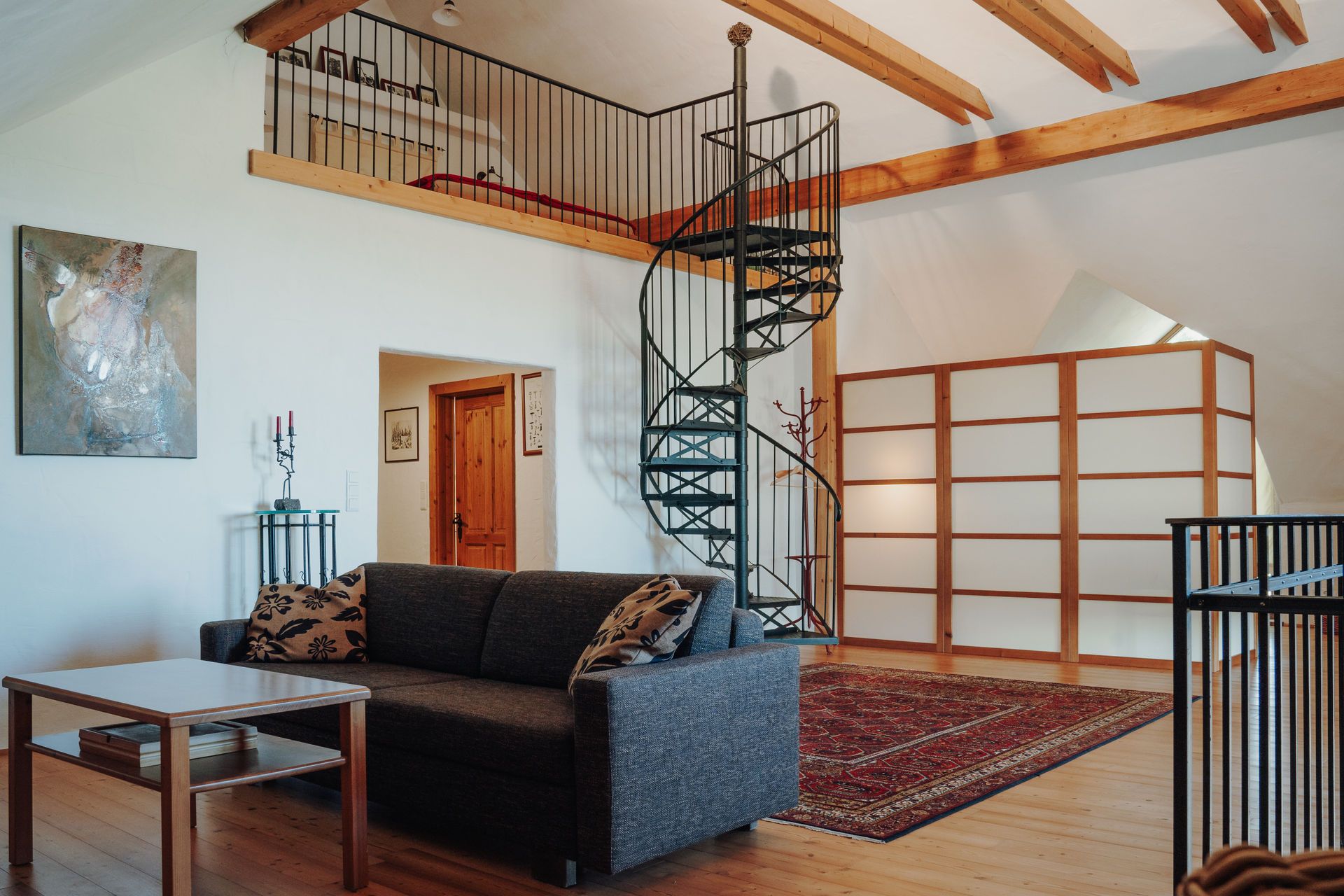 The vacation cellar harmonizesrustic and modern interiors and impresses with its spaciousness and openness. A living area integrated into the wine cellar, which offers generous space for overnight stays, surprises with all the amenities of an urban loft - with the difference that guests are surrounded by greenery and far away from any source of noise and stress.