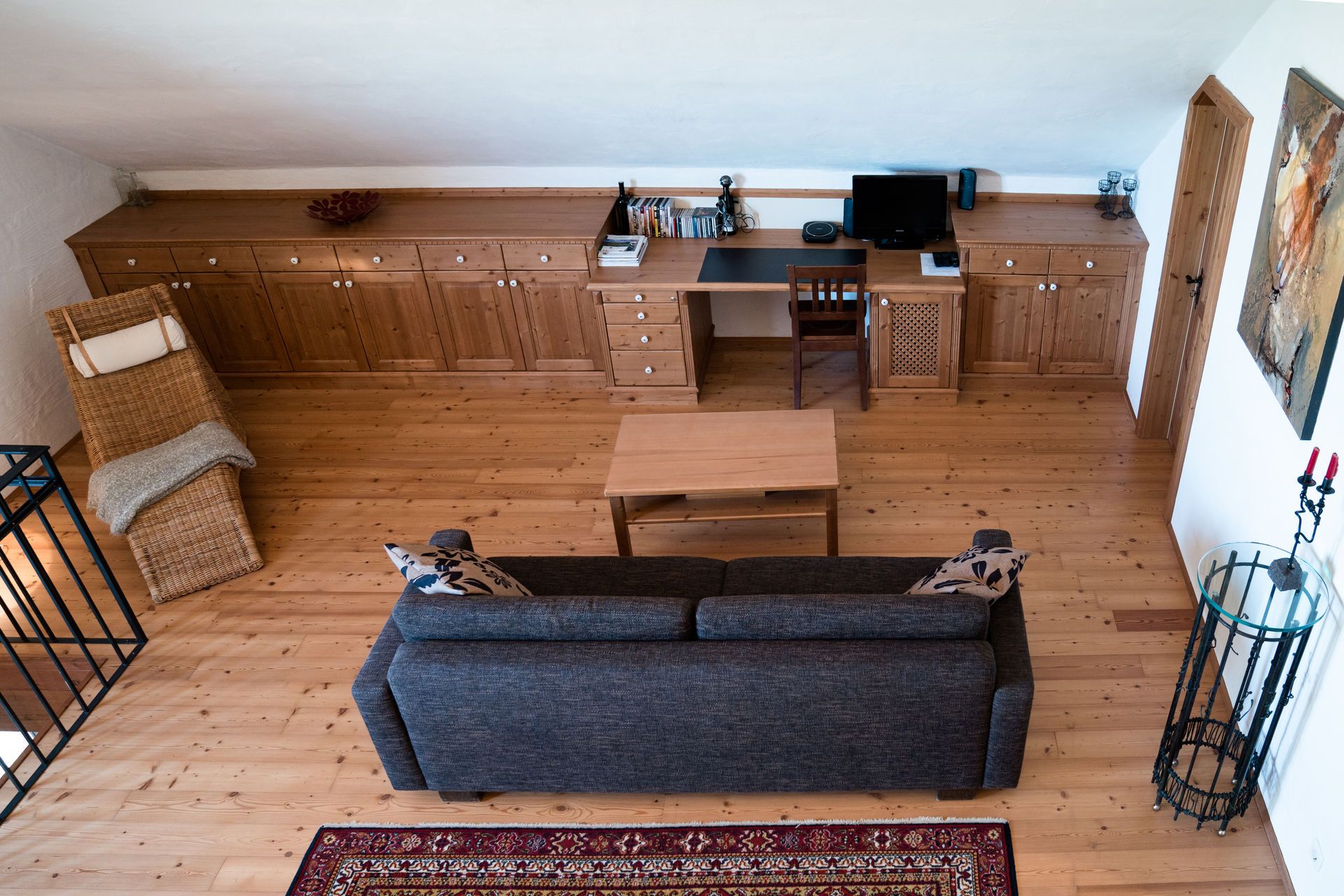 Sleeping accommodation for up to ten people is available on two levels on the upper floor. The individual sleeping areas are individually designed and visually separated from each other.