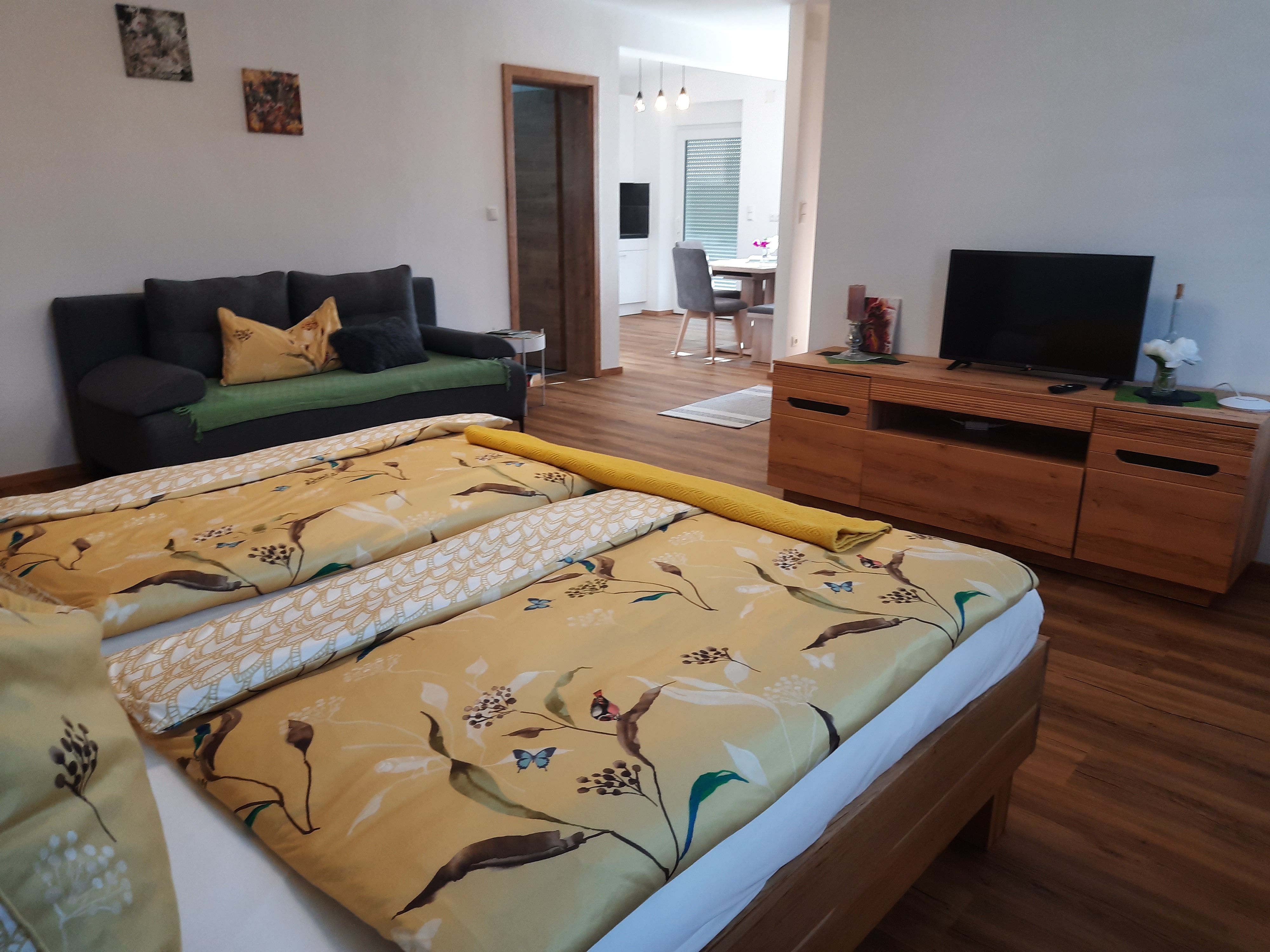 - a living room/bedroom with double bed and sofa bed incl. bed linen