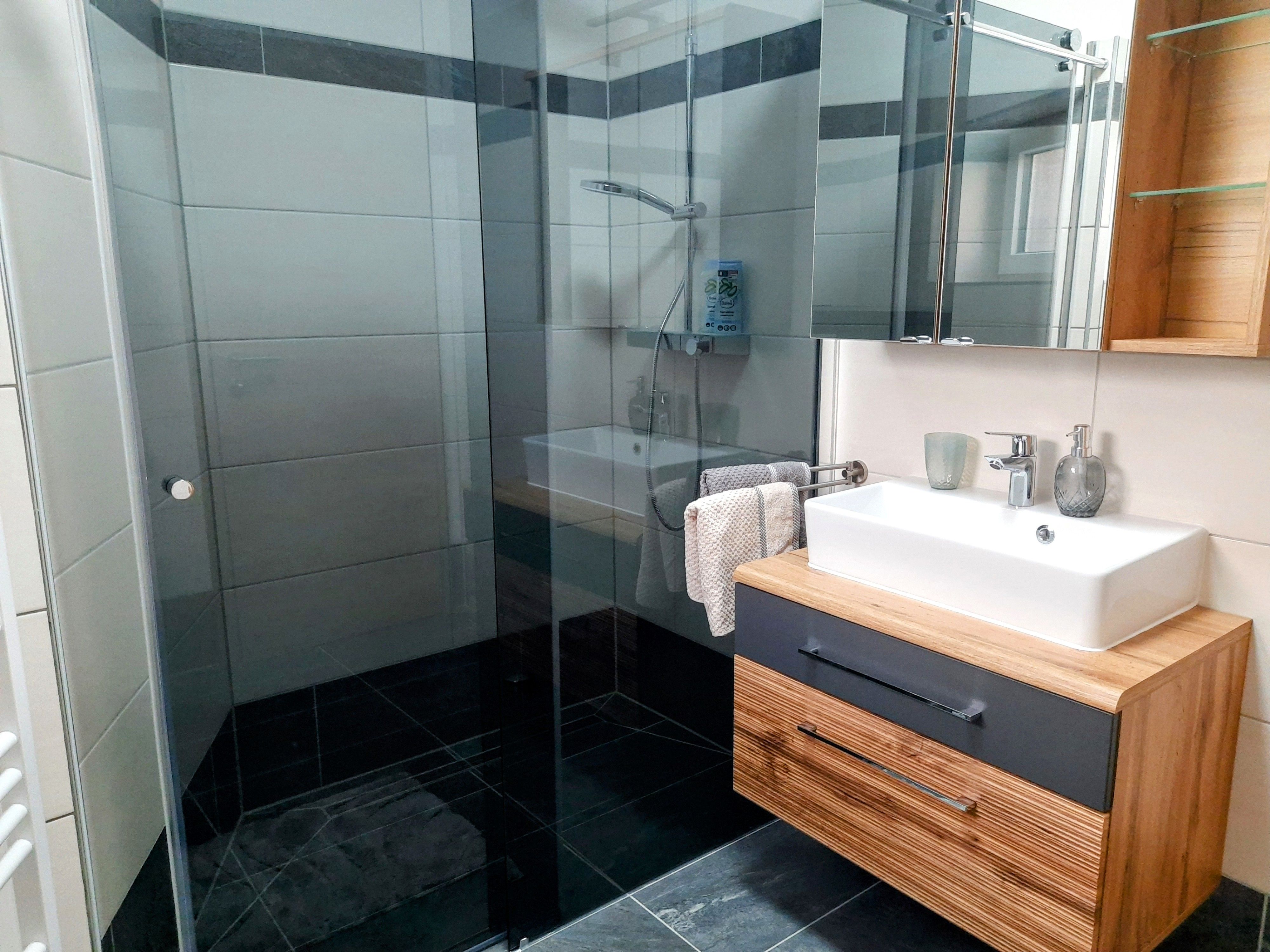- a modern bathroom with WC, incl. bath towels, hairdryer, shower gel