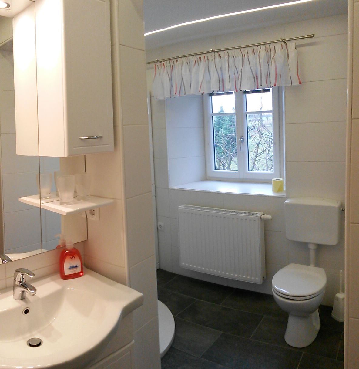 The apartment is fully furnished and equipped with daily necessities (crockery, towels, bed linen etc.). All available appliances (TV with SAT, radio with CD player, electric stove, microwave, dishwasher, coffee machine, fridge/freezer, washing machine, hairdryer, as well as an iron and ironing board) can be used. Hot water is heated in an environmentally friendly way with the help of a solar system, and most of the electricity used is also produced by a photovoltaic system. In winter, the apartment is heated with a pellet central heating system.
