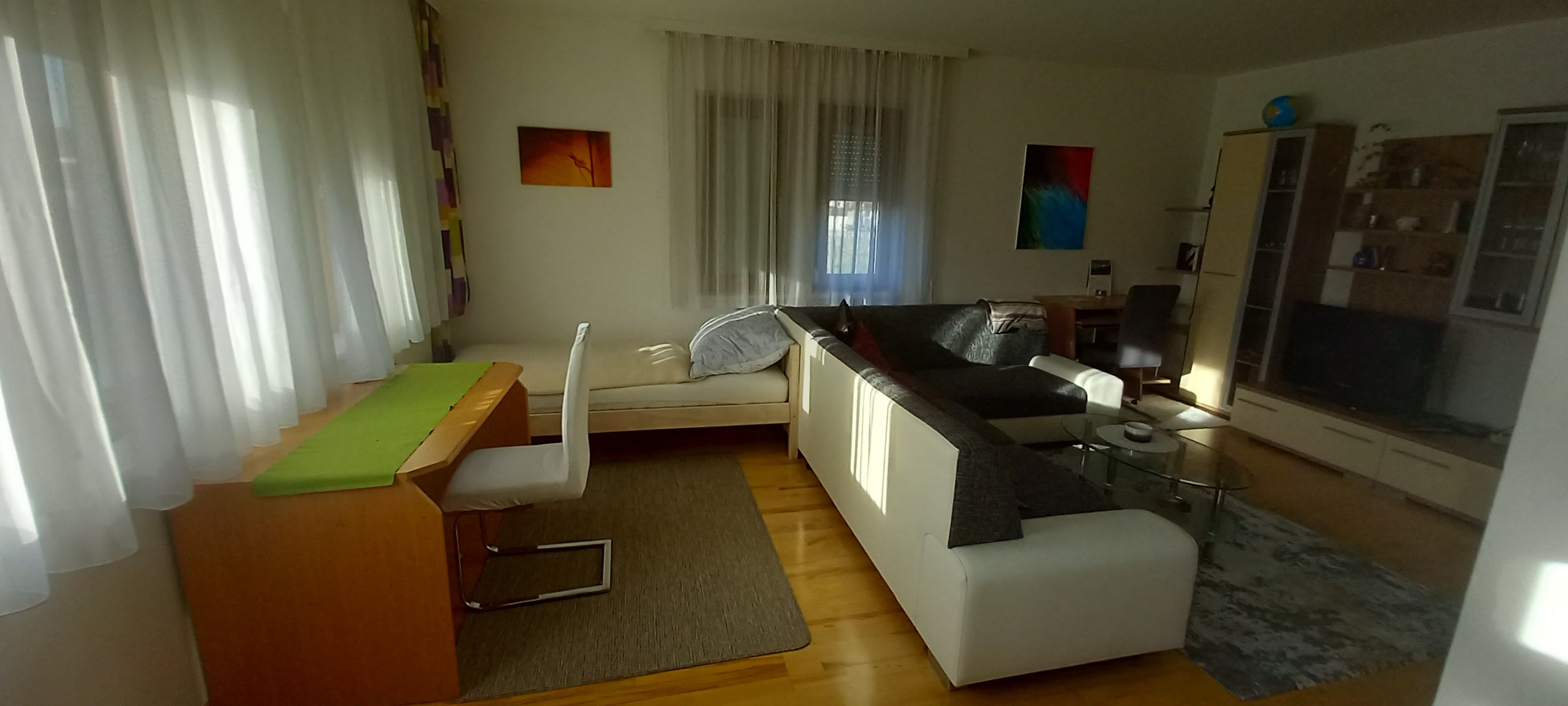 Cozy vacation apartment with approx. 65 m² in a beautiful, quiet location. In the apartment for max. 3 persons there is a well-equipped kitchen with helpful utensils with a nice dining area, a spacious living room, a bedroom for 2 persons (1 extra bed in the living room possible), a bathroom with bathtub (incl. towels and hairdryer..) and a separate toilet. A supermarket is in the immediate vicinity, pets are not allowed.