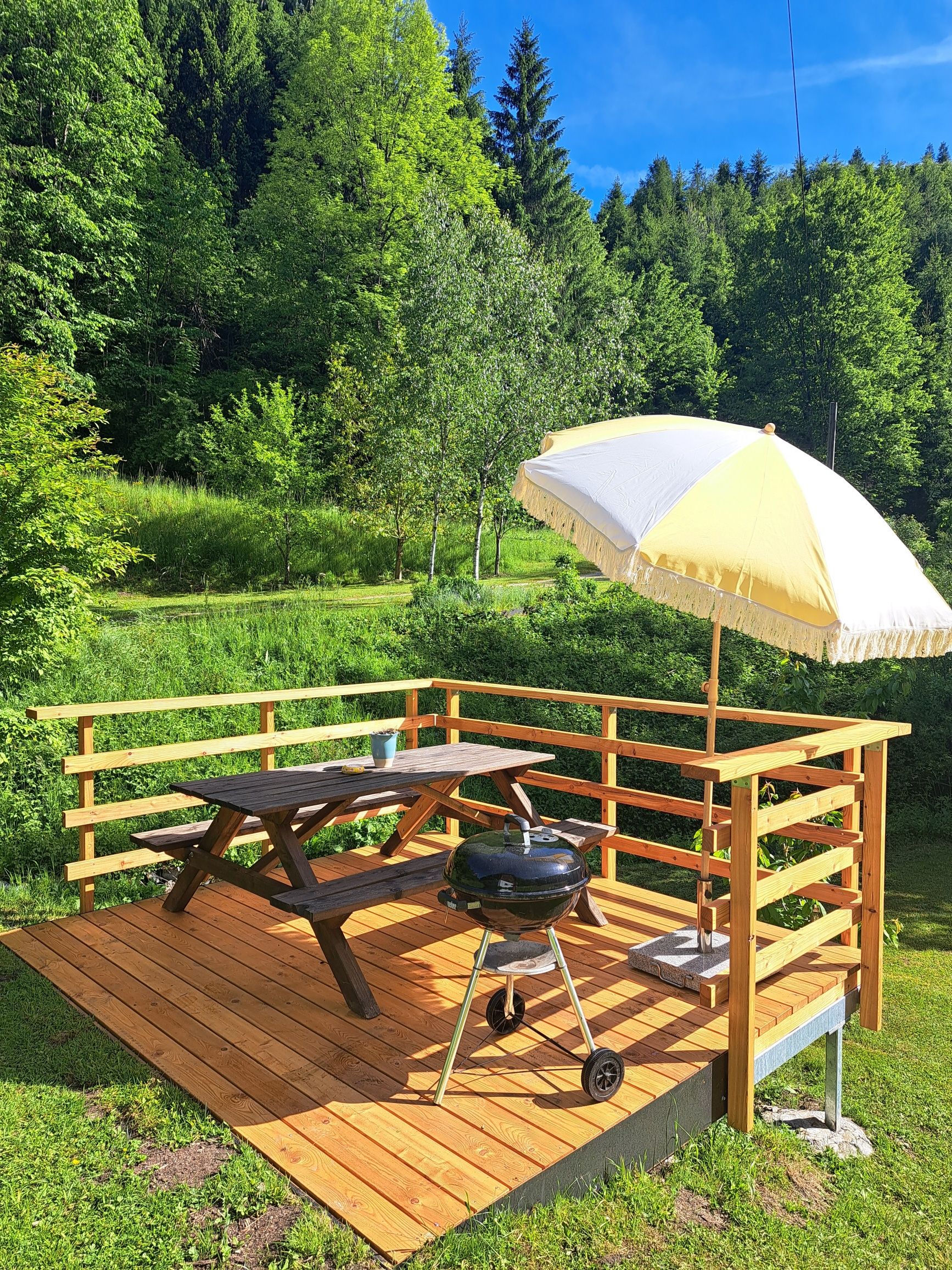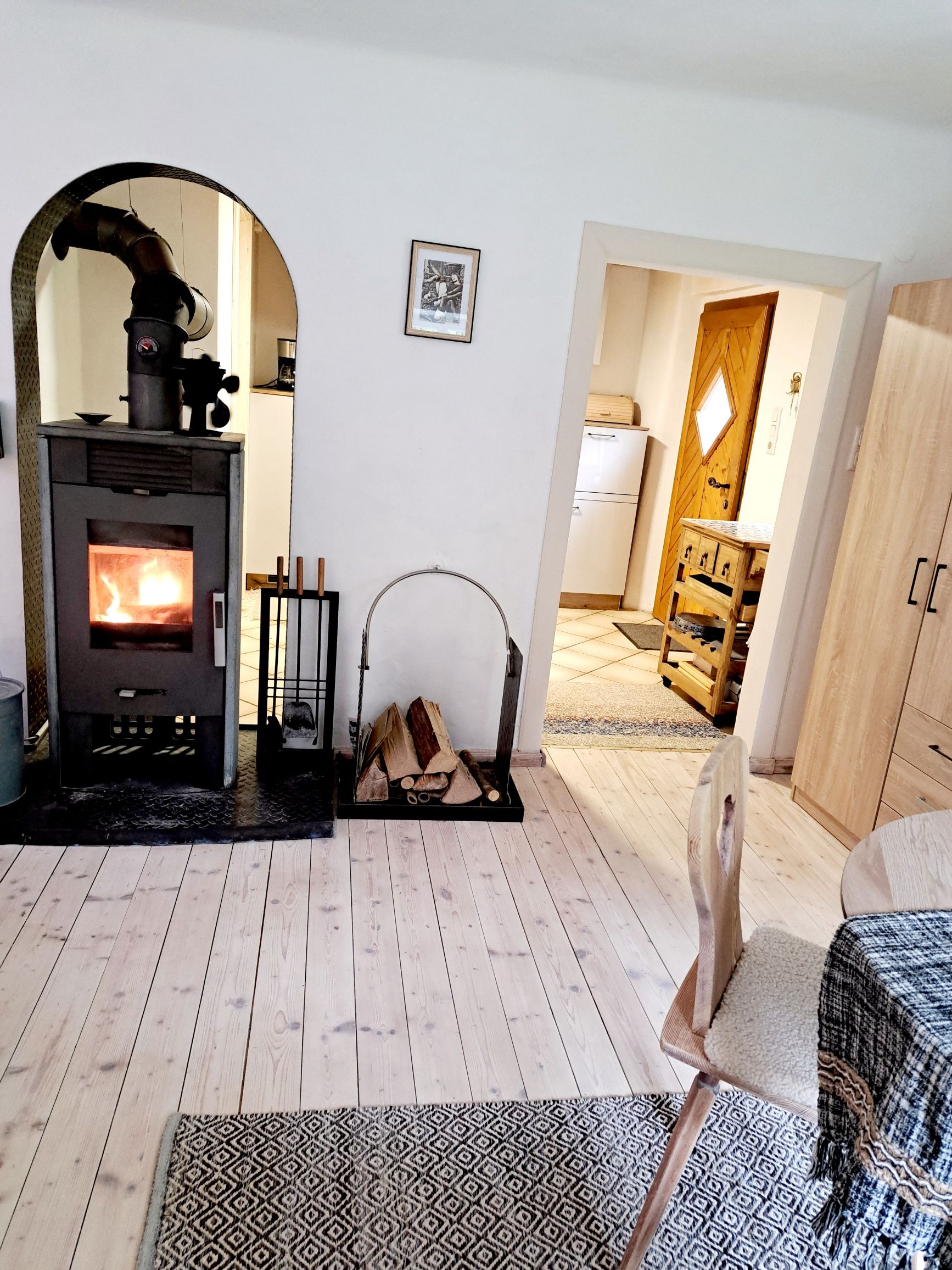 The new vacation apartment with separate entrance is located in the historic house floor of the Forsthäuschen. The small terrace is just a few steps from the apartment. Here you can start the day wonderfully with birdsong and the gentle babbling of the stream.