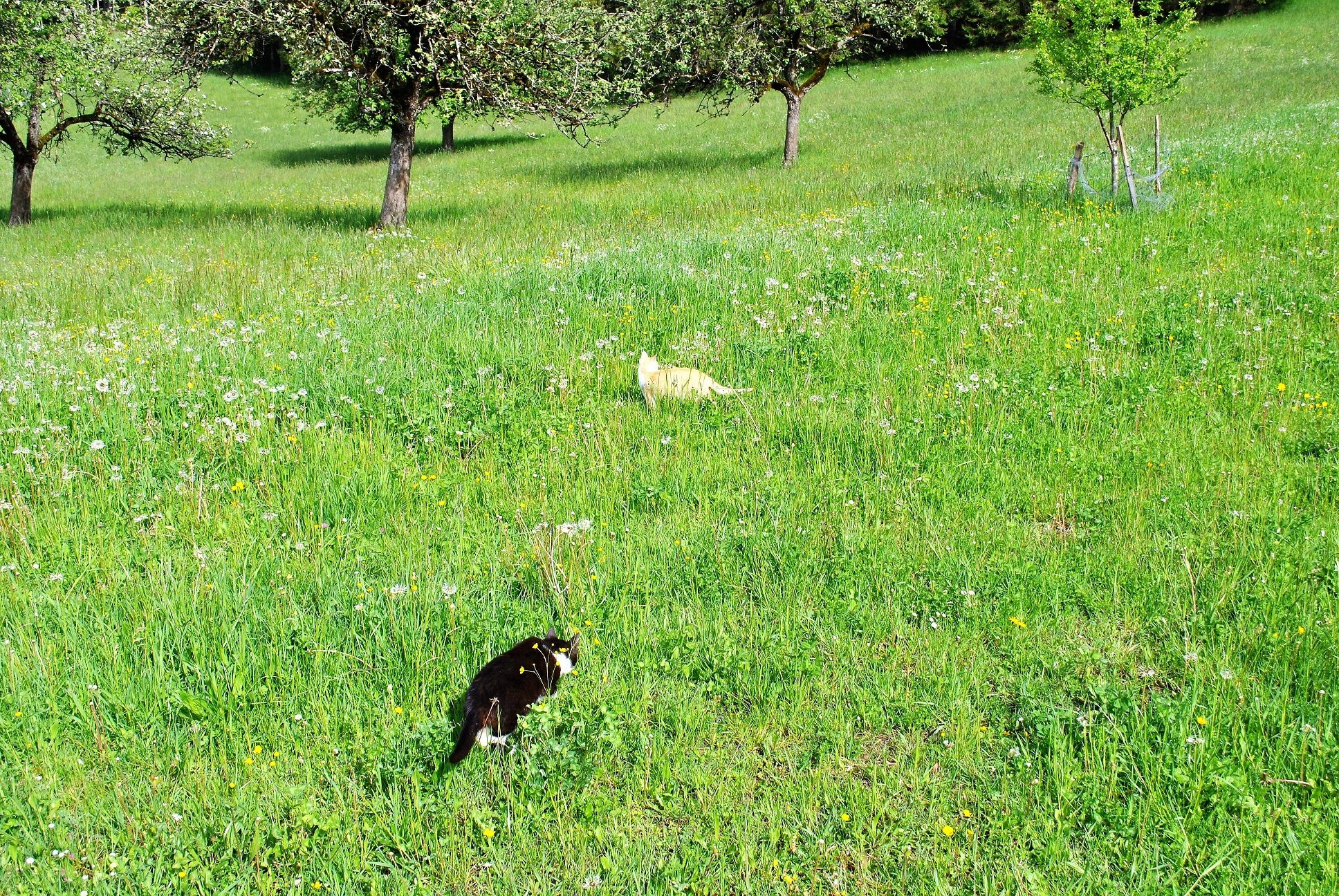 In addition to chickens and geese, we also have a rabbit and cats that are very happy to be petted.
