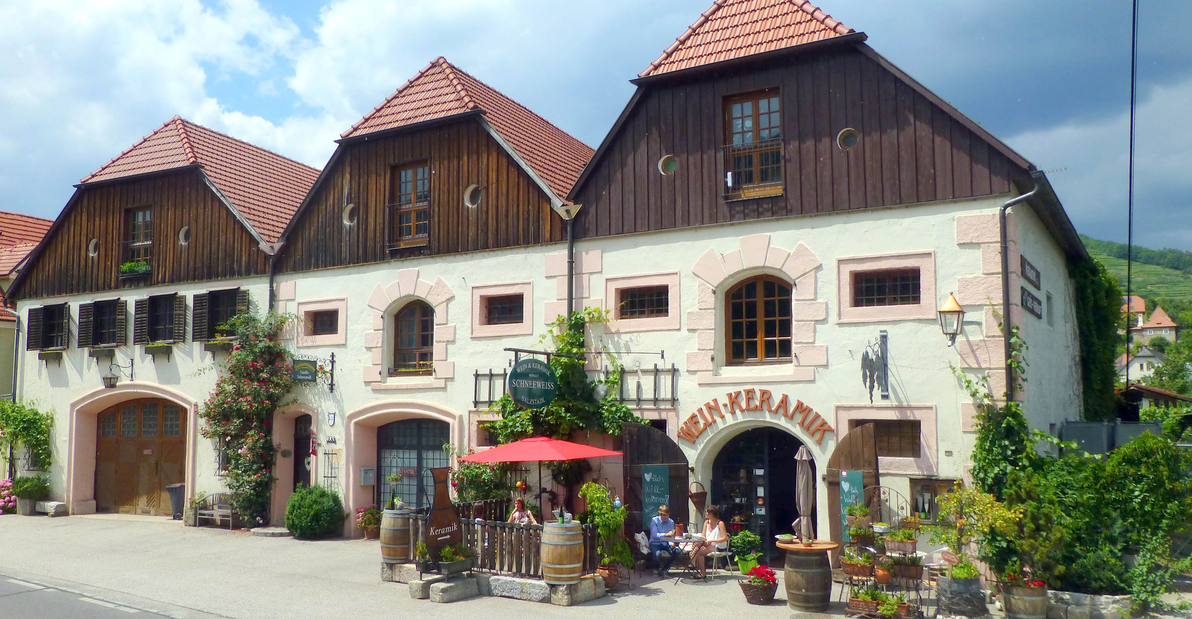 The historic Salzstadl'n is also an atmospheric setting for artistic, handmade ceramics. Sabine Schneeweiß, a graduate of the Master School of Ceramics in Graz, is all about wine, from wine coolers to decorative accessories. The Wachau animal world with emerald lizards, hedgehogs, frogs and vineyard snails also serve as motifs for pretty decorative elements such as daisies and sunflowers. Tasty gifts, homemade jams, chutneys, apricot specialties and wines from the estate's own vineyard round off the range. Speaking of wines: father Anton Schneeweiß makes excellent wines, with Grüne Veltliner and Riesling being the main focus.