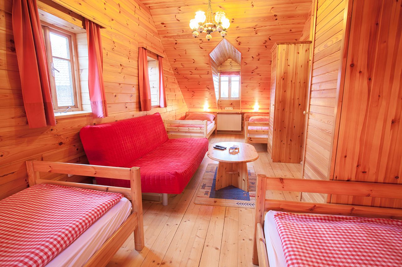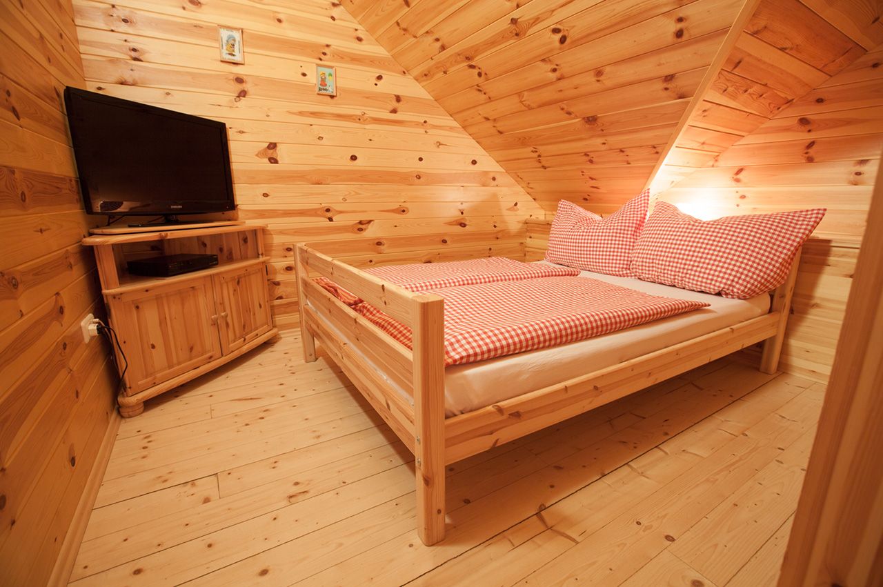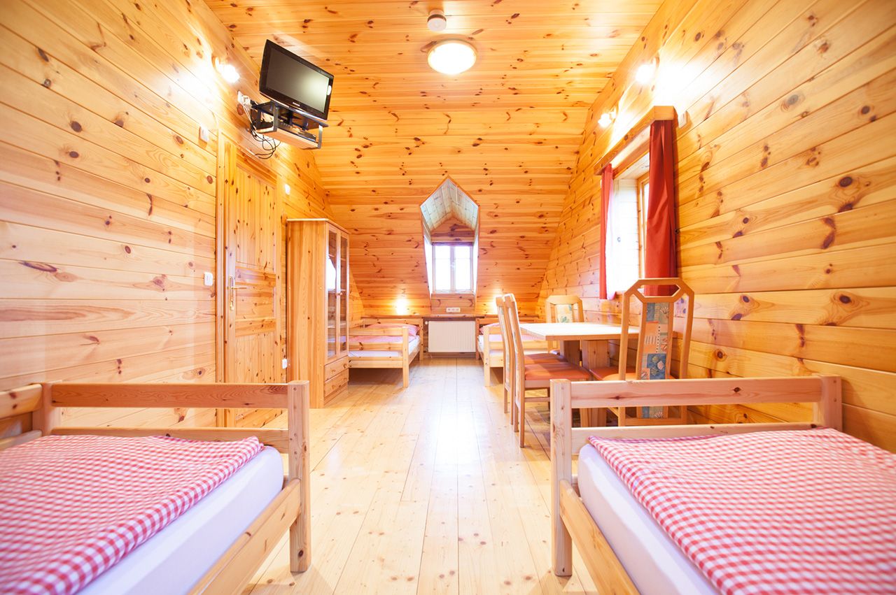 The natural rooms in our log cabin are furnished with pine wood. The ambience is simple & cozy. The building can accommodate up to 19 people and is the ideal accommodation for cheerful groups and families who don't want to compromise on comfort. (max. capacity in the entire inn up to 45 people)
