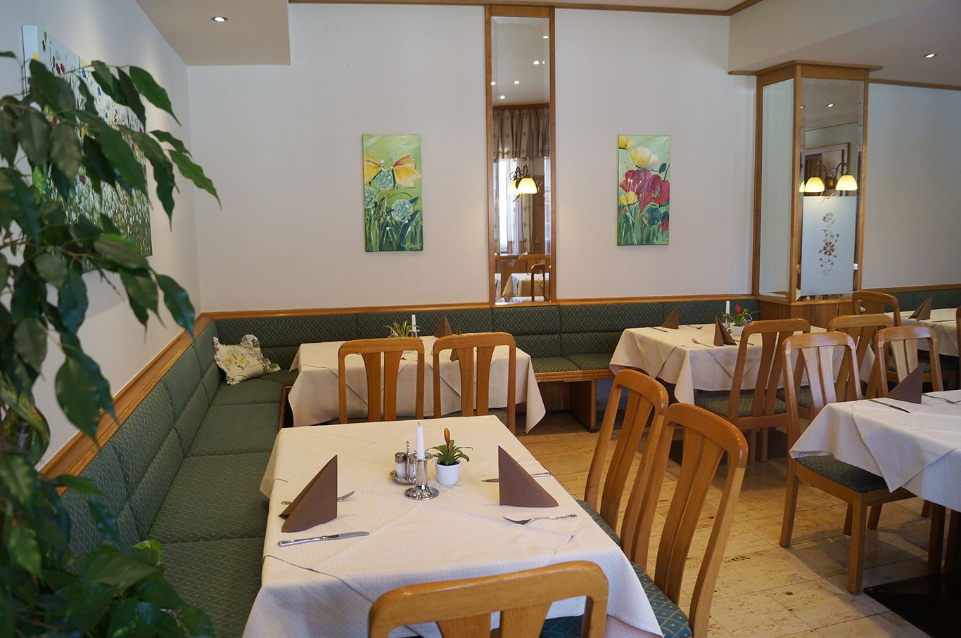 We took over the inn in 1990 and it has been family-owned ever since. After several renovations, we now offer 24 beds, a banqueting hall for around 150 people, seminar rooms, a bowling alley and a spacious guest garden.