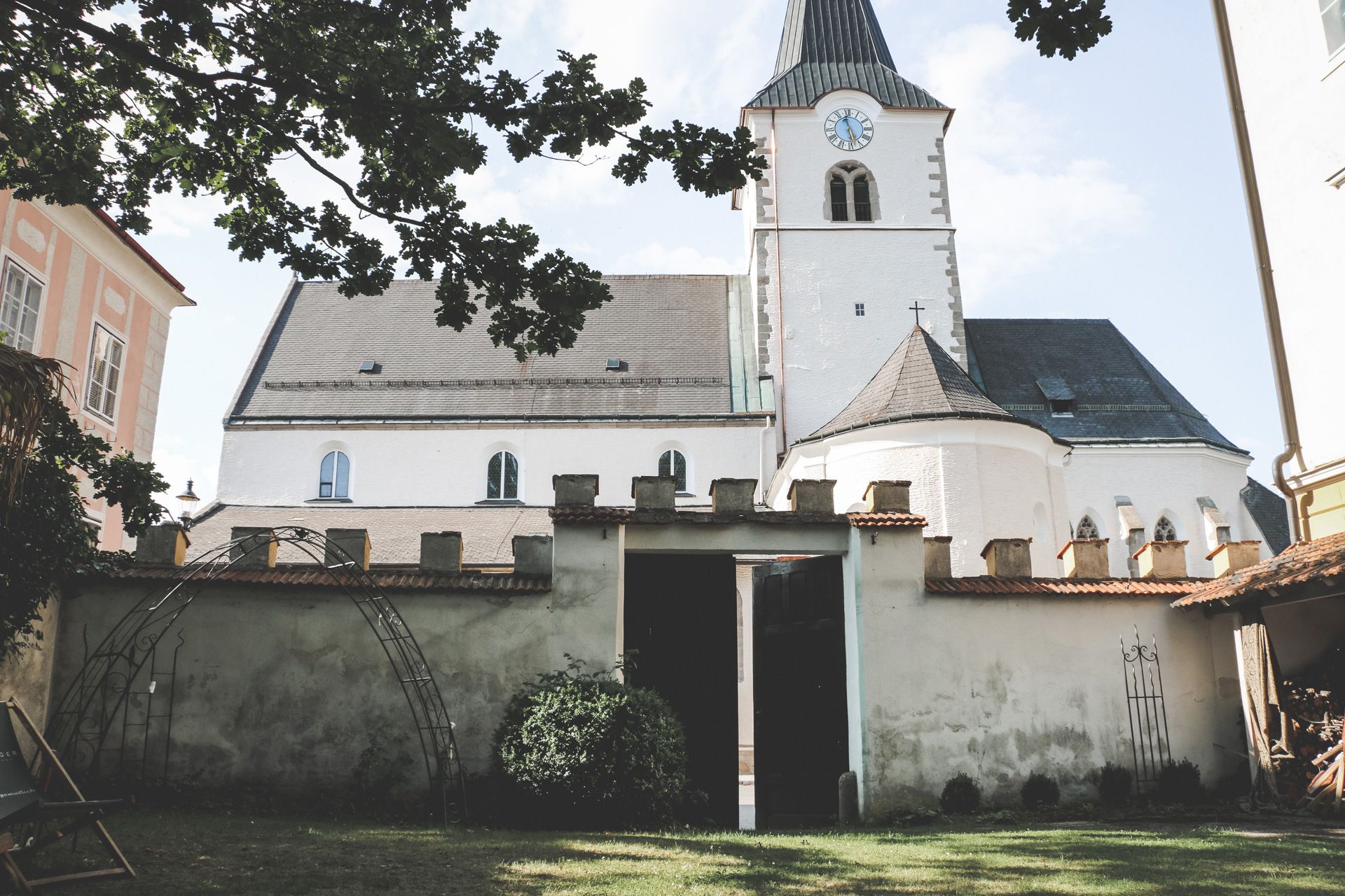The use of the inner courtyard garden (including covered bicycle parking) is possible. You will find free parking directly on the church square in front of the house.
