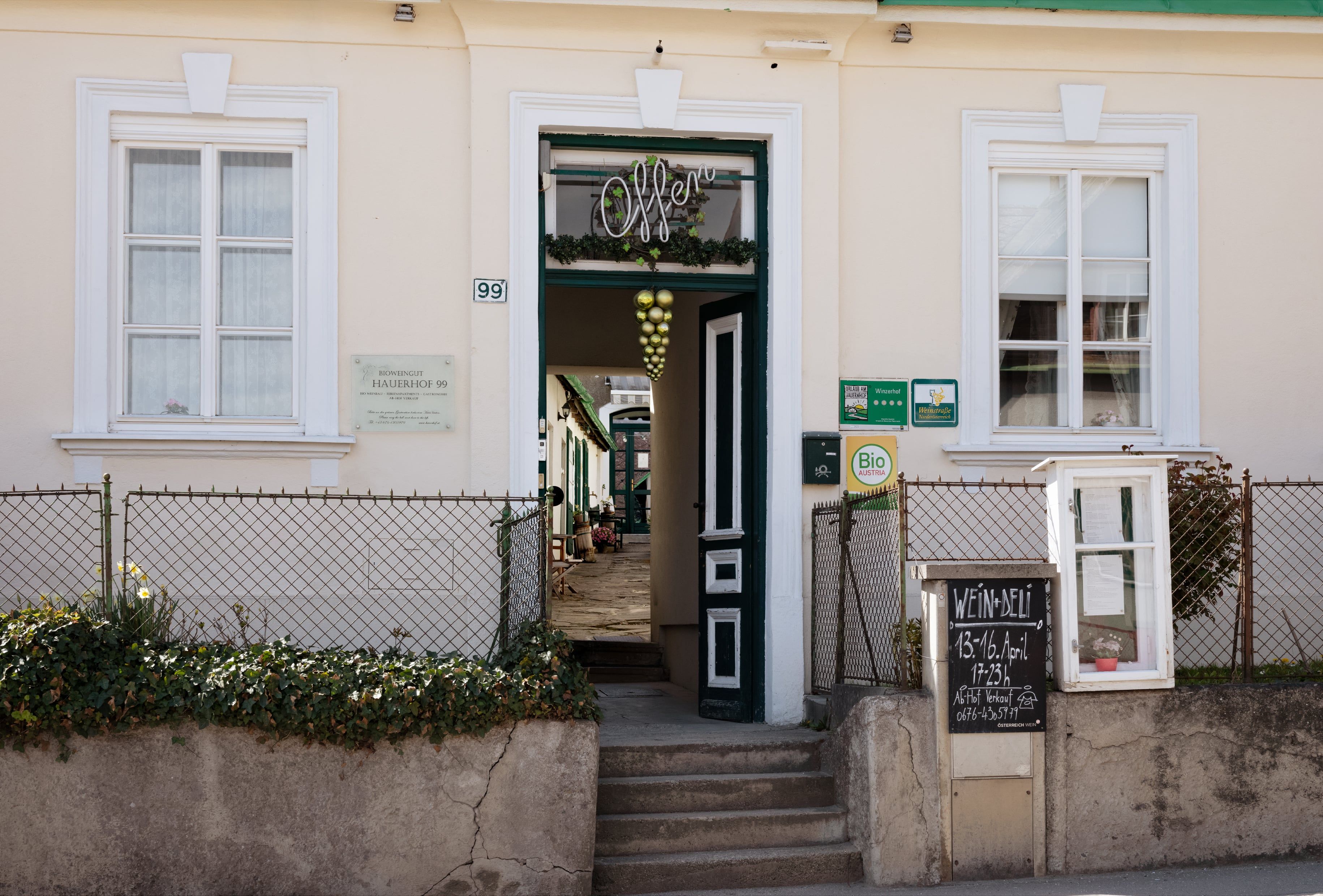 The organic winery Hauerhof 99, just 10 km from Vienna, offers lovingly renovated vacation apartments for 2-6 people. Each apartment has a fully equipped kitchen, air conditioning and satellite TV and offers free WLAN internet access. The location is ideal for cyclists, with a bike stable and only 300 meters to the Danube cycle path and train station. Vienna can be reached in just 15 minutes by public transport or car. The winery also has a wine tavern restaurant, the opening hours of which can be found on the homepage. The combination of comfortable accommodation, organic viticulture and proximity to Vienna makes Hauerhof 99 an attractive destination for tourists. The apartments offer a view of orchards, vineyards and herb gardens and guests can enjoy organic quality wines and delicacies from the farm's own production. The restaurant serves creative country house cuisine with international variety, regional ingredients and seasonal inspiration.