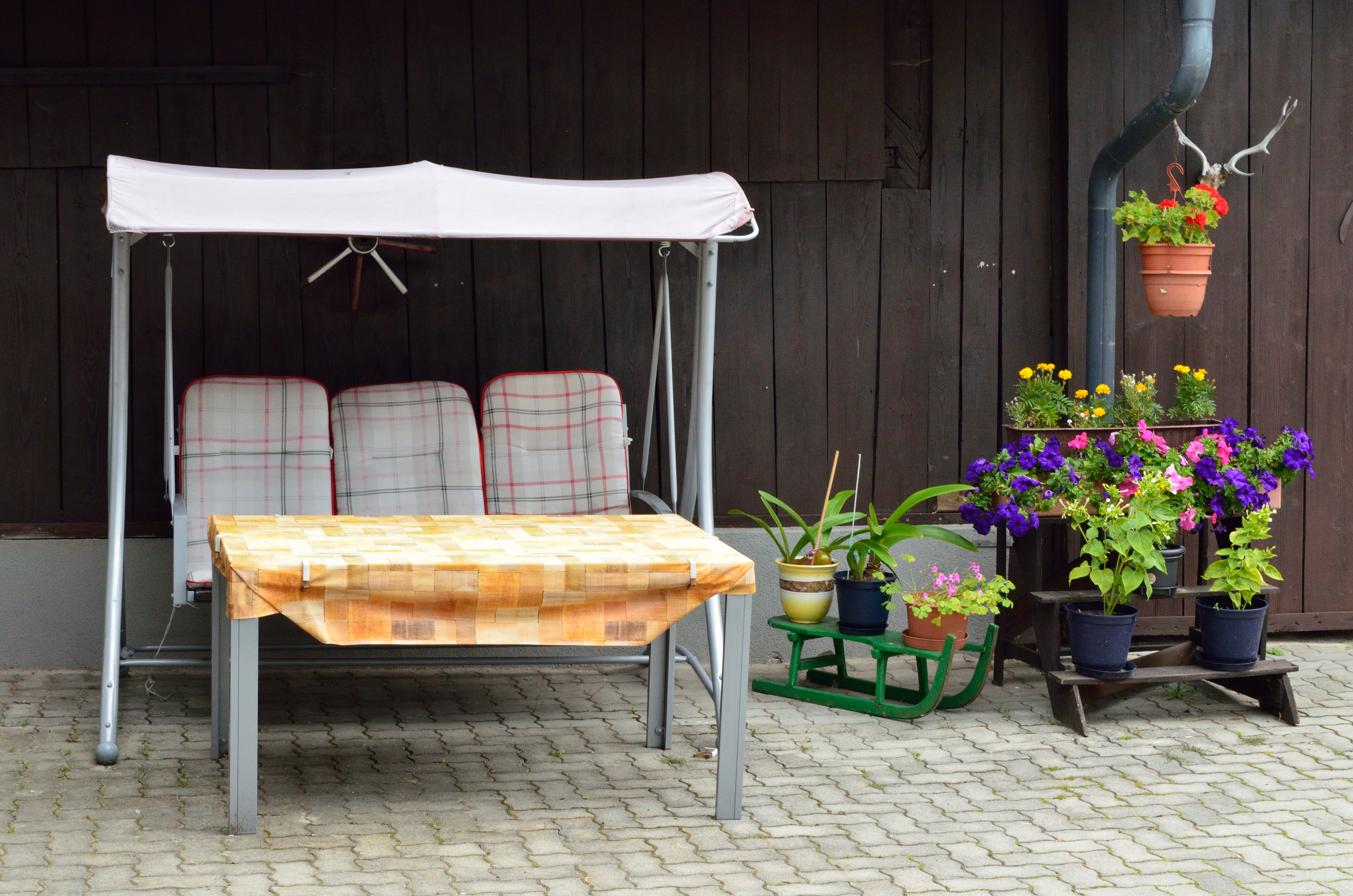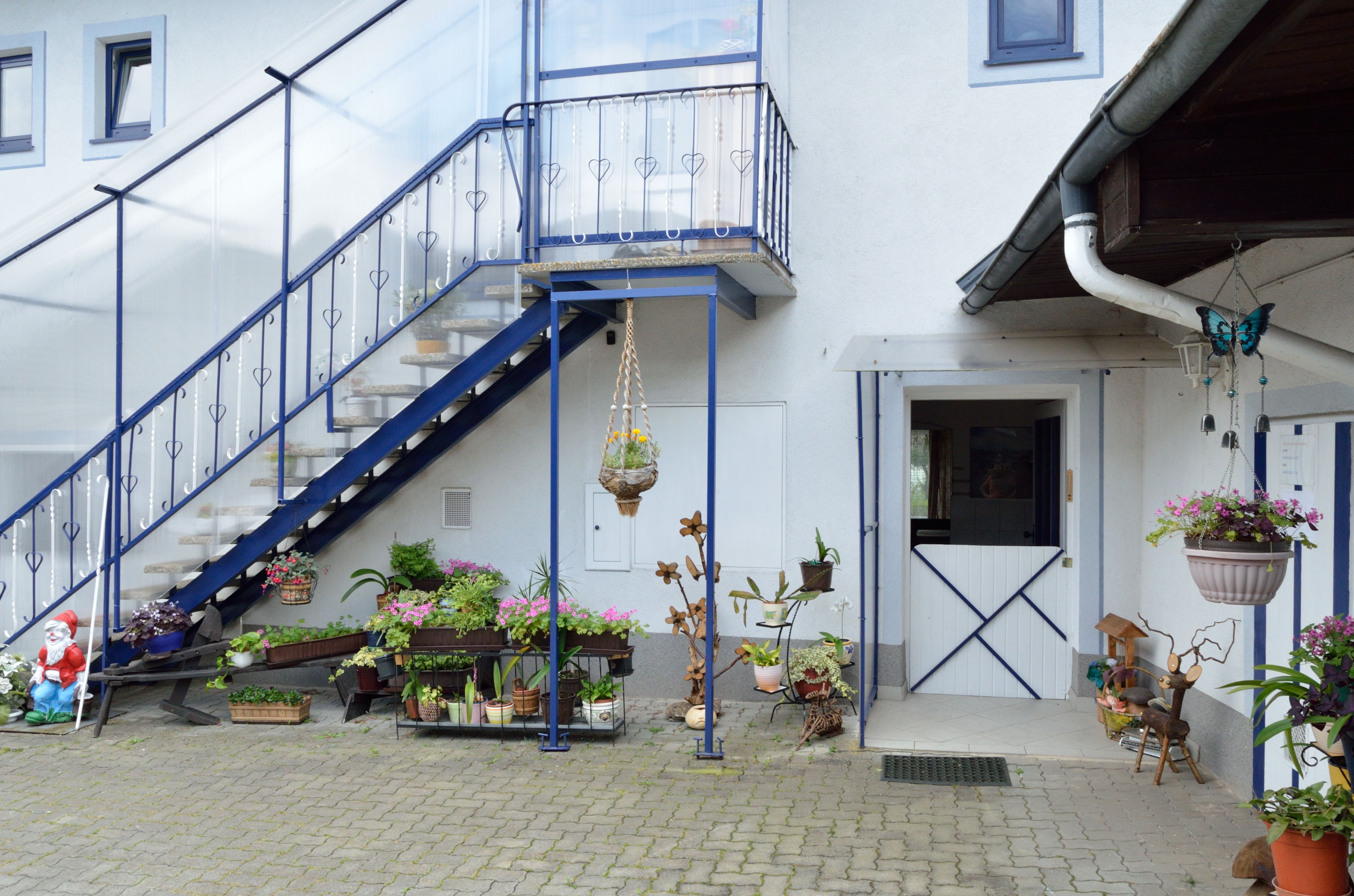 Quiet inner courtyard with pergola and Hollywood swing, barbecue facilities in summer, large garden, apartments have ground-level access, reduced rates for children,