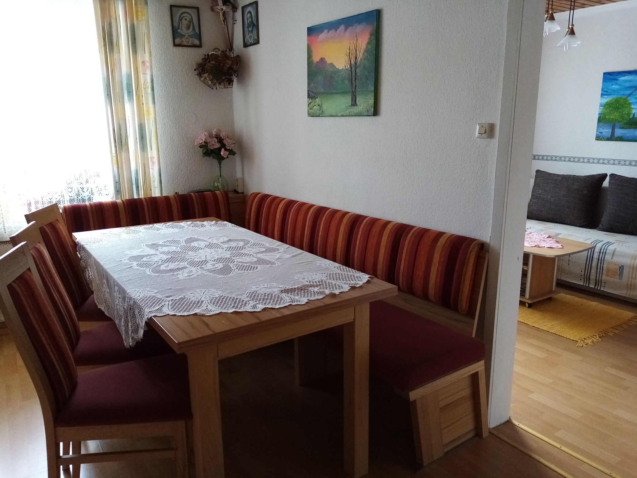1 vacation apartment for 2 - 6 people with bedroom, living room, satellite TV, free WLAN, radio, fully equipped kitchen with sitting area, bathroom, WC