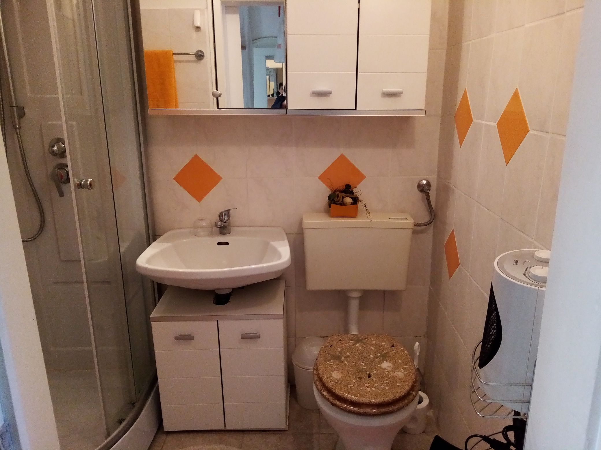 1 vacation apartment for 2 people with living room/bedroom, kitchen, satellite TV, free WLAN, bathroom, WC