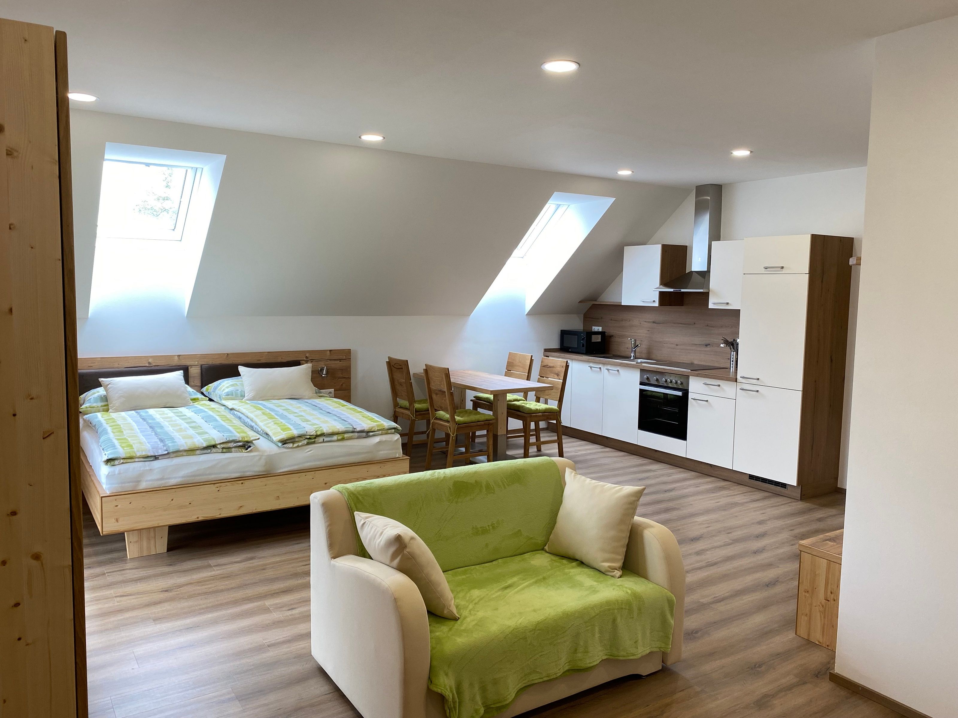 Where the old hay barn once stood, a new guest house made of solid wood was built in 2022. Care was taken during construction to use wood from the region and, thanks to the spruce native to the Waldviertel, the rooms have a pleasant and calming indoor climate.
