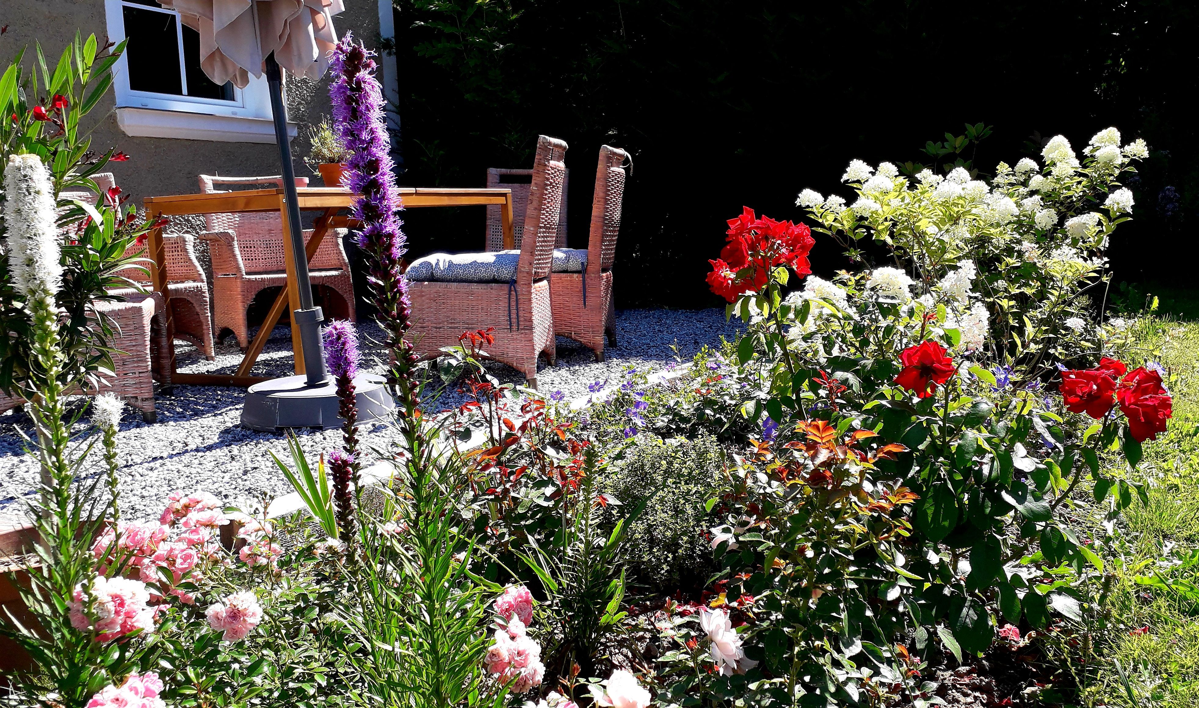Shade is provided by a large, old spruce tree, under which you can comfortably spend time in a deck chair.