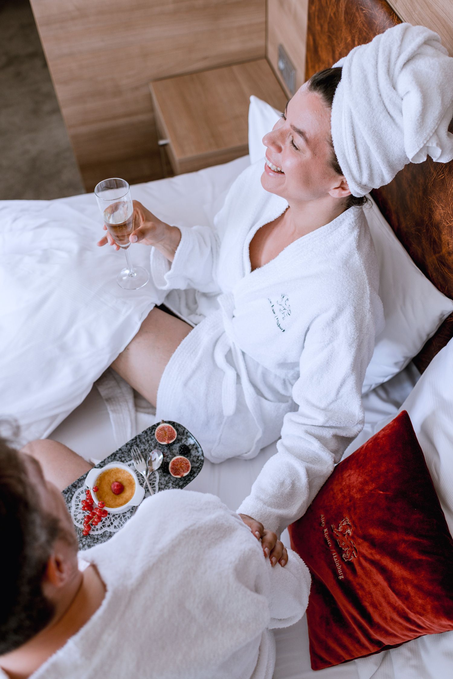 The 52 individually designed rooms are decorated in warm colors and are characterized by high-quality natural materials and loving furnishings. Each room is unique due to its architecture - some with historic cross vaults, some with a special view. The basic facilities include a cosmetic mirror, bathroom cosmetics, fluffy bathrobe with slippers, hairdryer and a modern media system with over 100 TV channels on a flat screen - conveniently operated from the large bed.