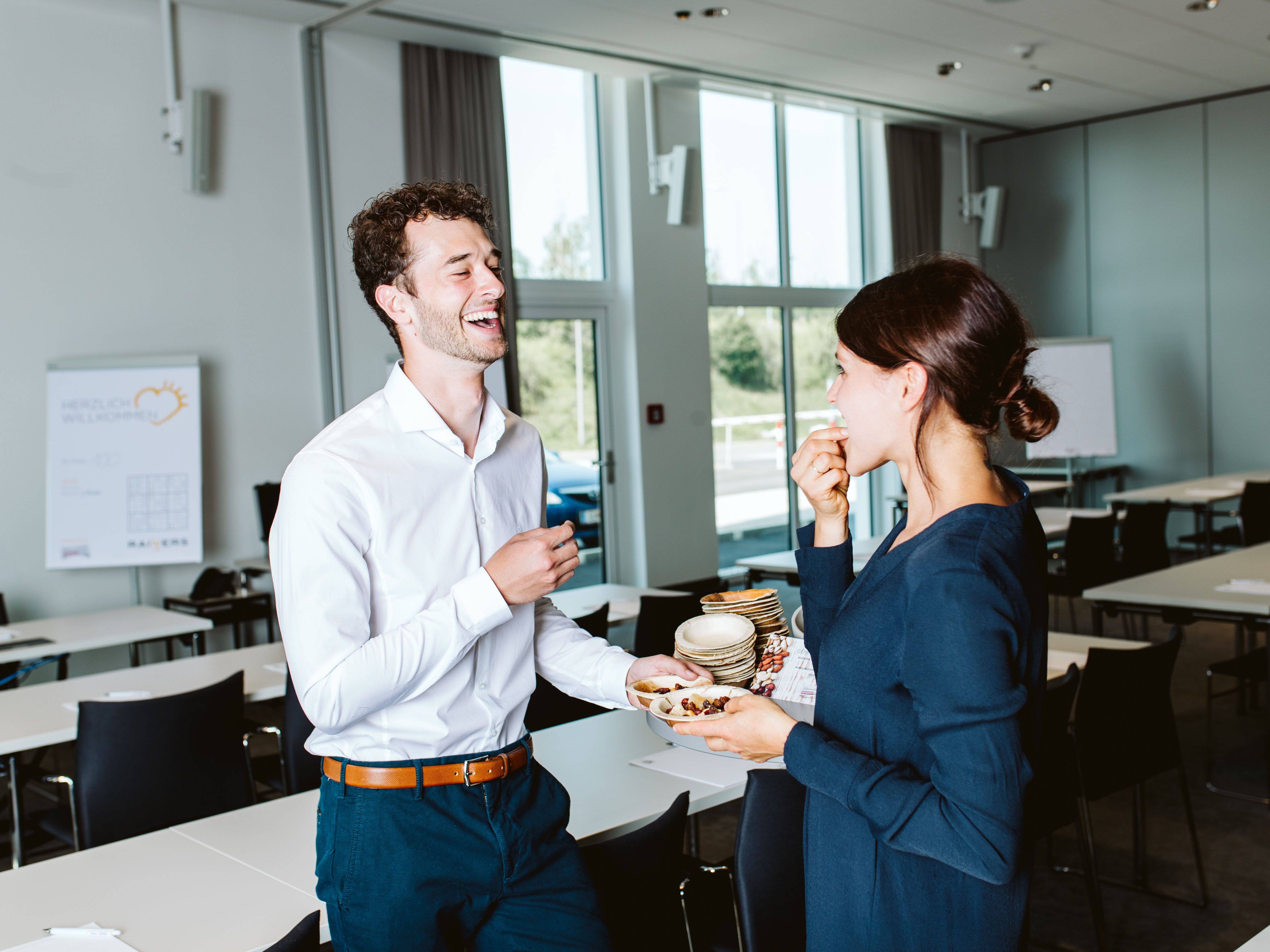 The Italian restaurant "VENTUNO" with open show kitchen provides high-quality culinary catering, which is open daily not only to the hotel's own guests but also to external guests, e.g. from the surrounding office buildings. All dishes can be taken away or enjoyed in the restaurant's 270 seats. The terrace overlooking the pond with around 70 seats as well as beach chairs and hammocks also invites you to linger.