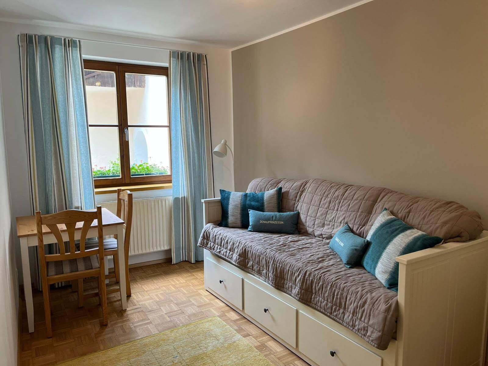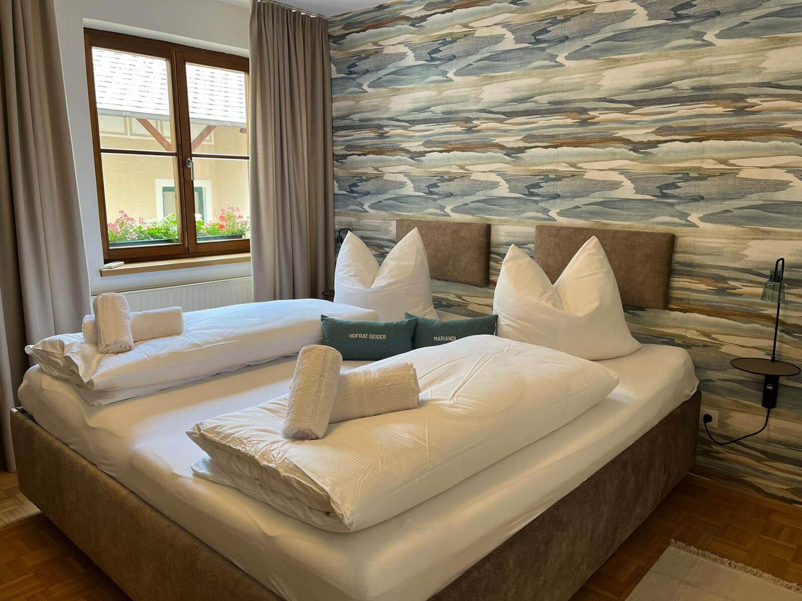 Guests can indulge in culinary delights at Café Mariandl & Mehr, which is also part of the apartment. The menu covers a wide range of dishes, from breakfast and homemade pastries to traditional Viennese classics such as schnitzel. Breakfast from Thursday to Monday, e.g. Relaxed melange, homemade cakes or Wachau classics such as apricot dumplings. Hot meals at lunchtime complement the menu, with regularly changing daily specials and seasonal highlights. The guest garden on the church square invites you to linger - ideal for guests who want to combine an apartment and a café.
