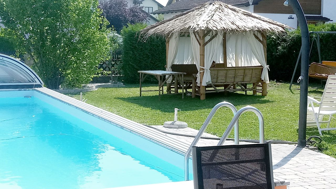 In our cozy garden there is a pool with sunbathing lawn, a large garden house with barbecue facilities and a children's playground.