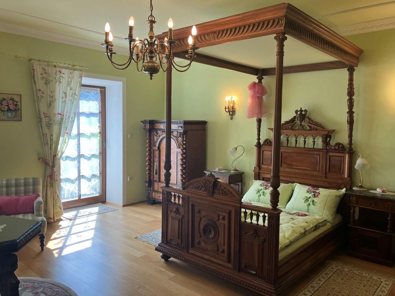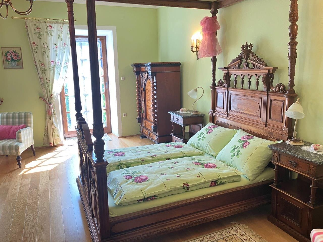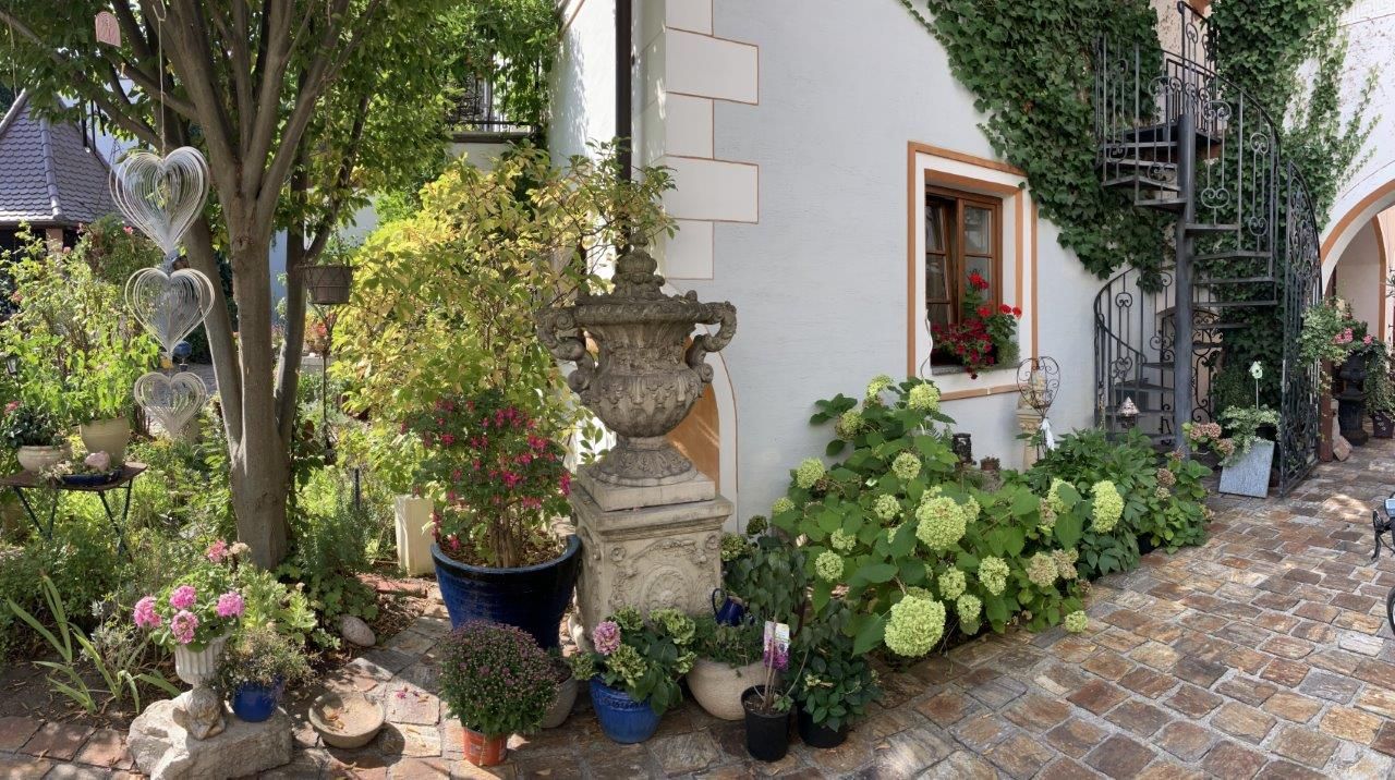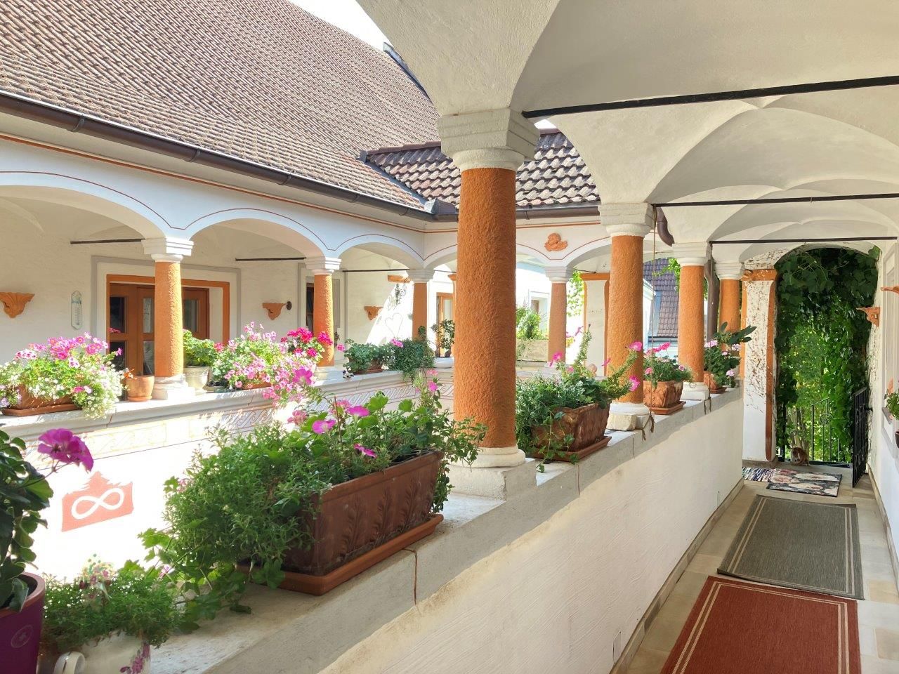 The time-honored manor house with its Renaissance arcaded courtyard from the 16th century is an ideal starting point for hikes and bike tours through the Traisental. The Premium bon-vivant rooms are furnished with stylish antiques and an antique four-poster bed. The apartment has a luxurious bathroom and a modern kitchen. The balcony overlooks the dreamy rose garden.