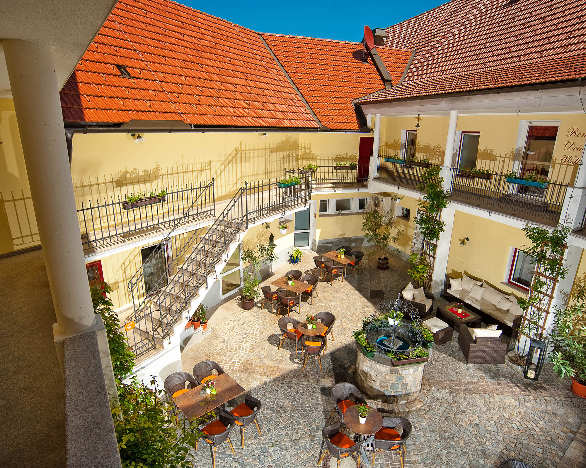 In a prime location on the Danube and on the cycle path. In the heart of the Wachau, on the right bank of the Danube. Described by regular guests as the most beautiful terrace in the Wachau, you can watch the hustle and bustle and the countless ships on the Danube up close. Surrounded by beautiful countryside with fantastic excursion and hiking opportunities, this is a romantic place to relax. From the Stone Age (Venus of Willendorf) to Roman times (excavations), the Middle Ages (numerous castle ruins), Gothic churches, Renaissance courtyards, Baroque monasteries and modern galleries and events, guests can explore the area from the hotel.