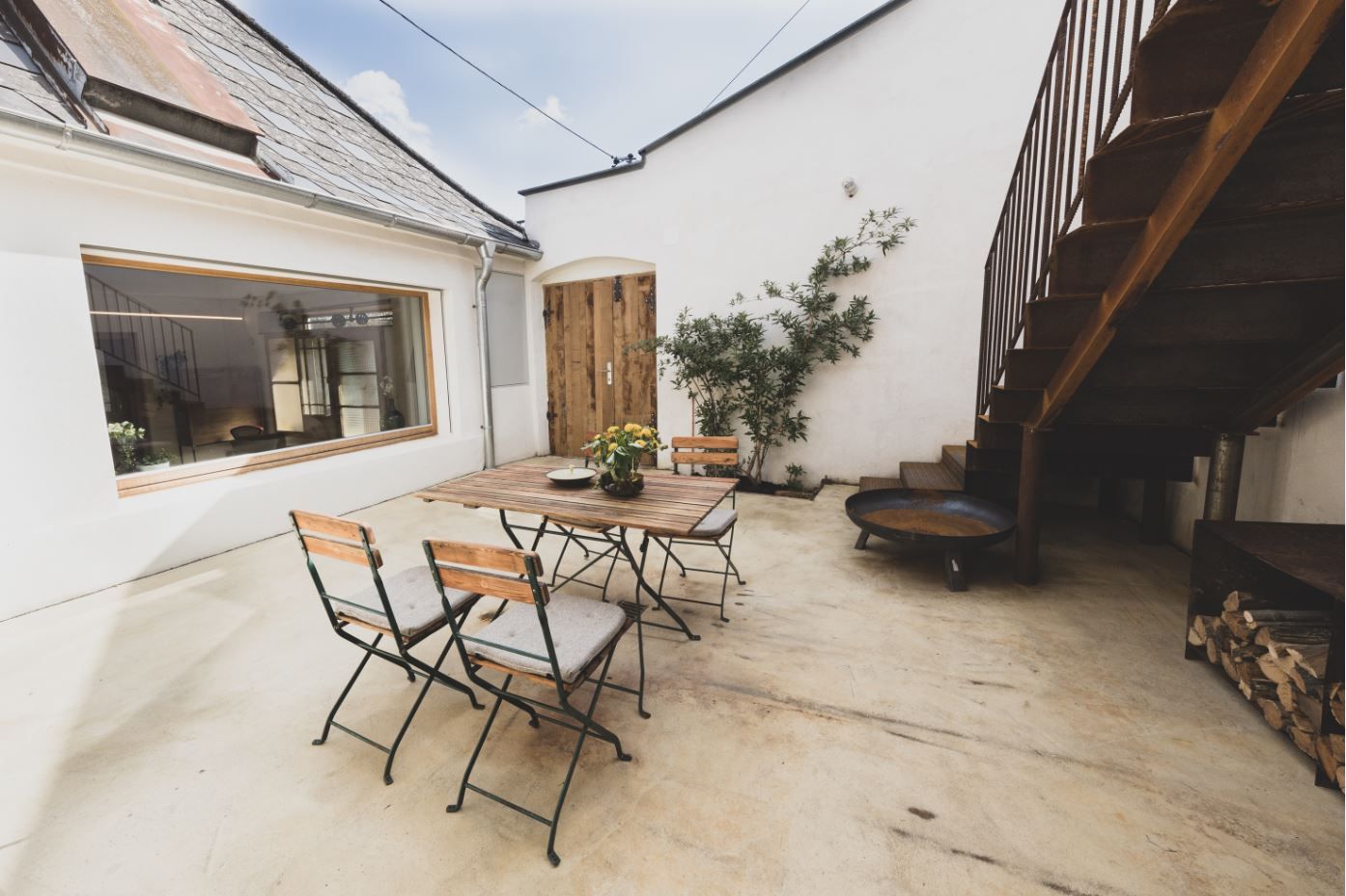 Courtyard with cozy seating area and barbecue