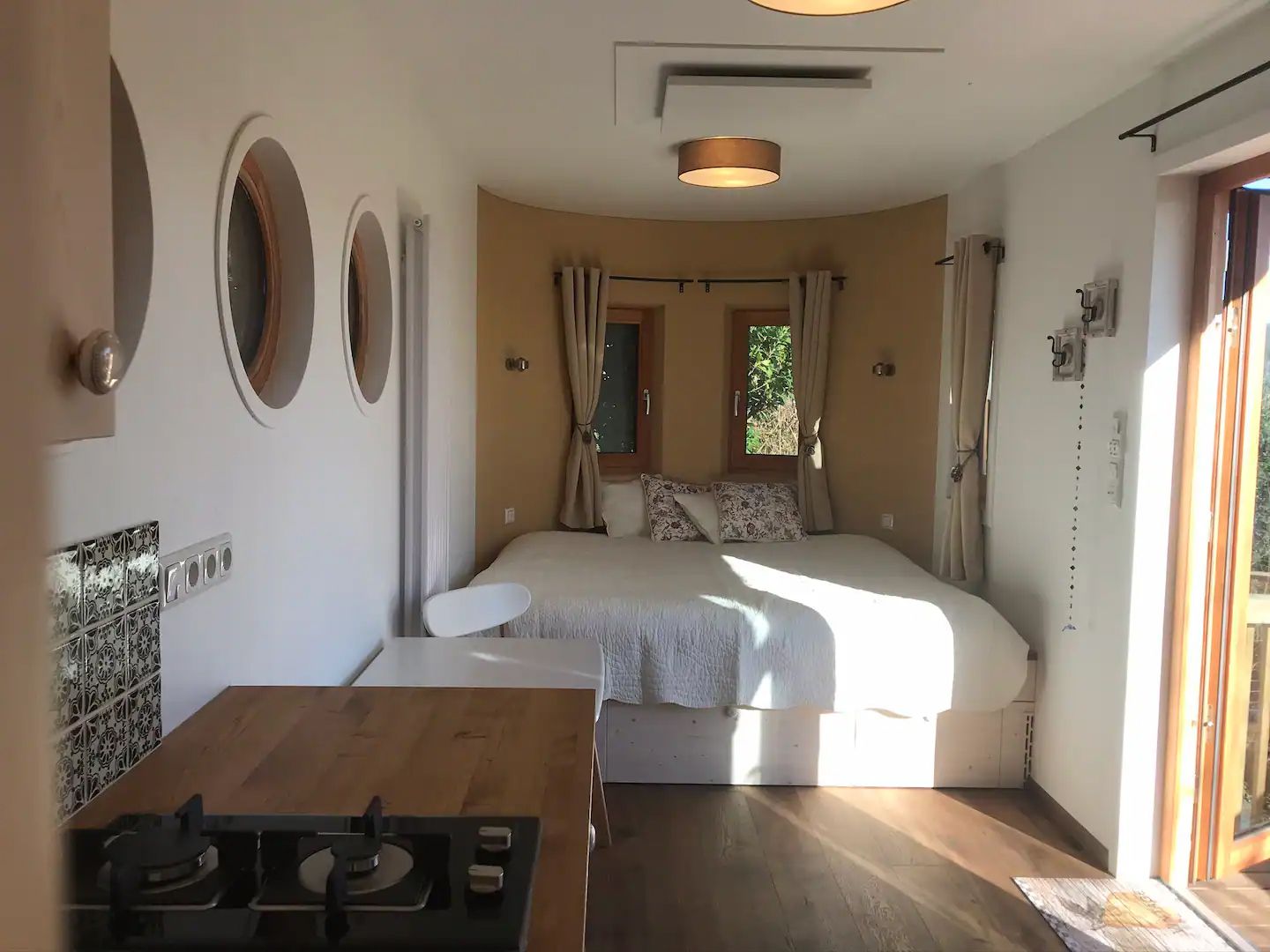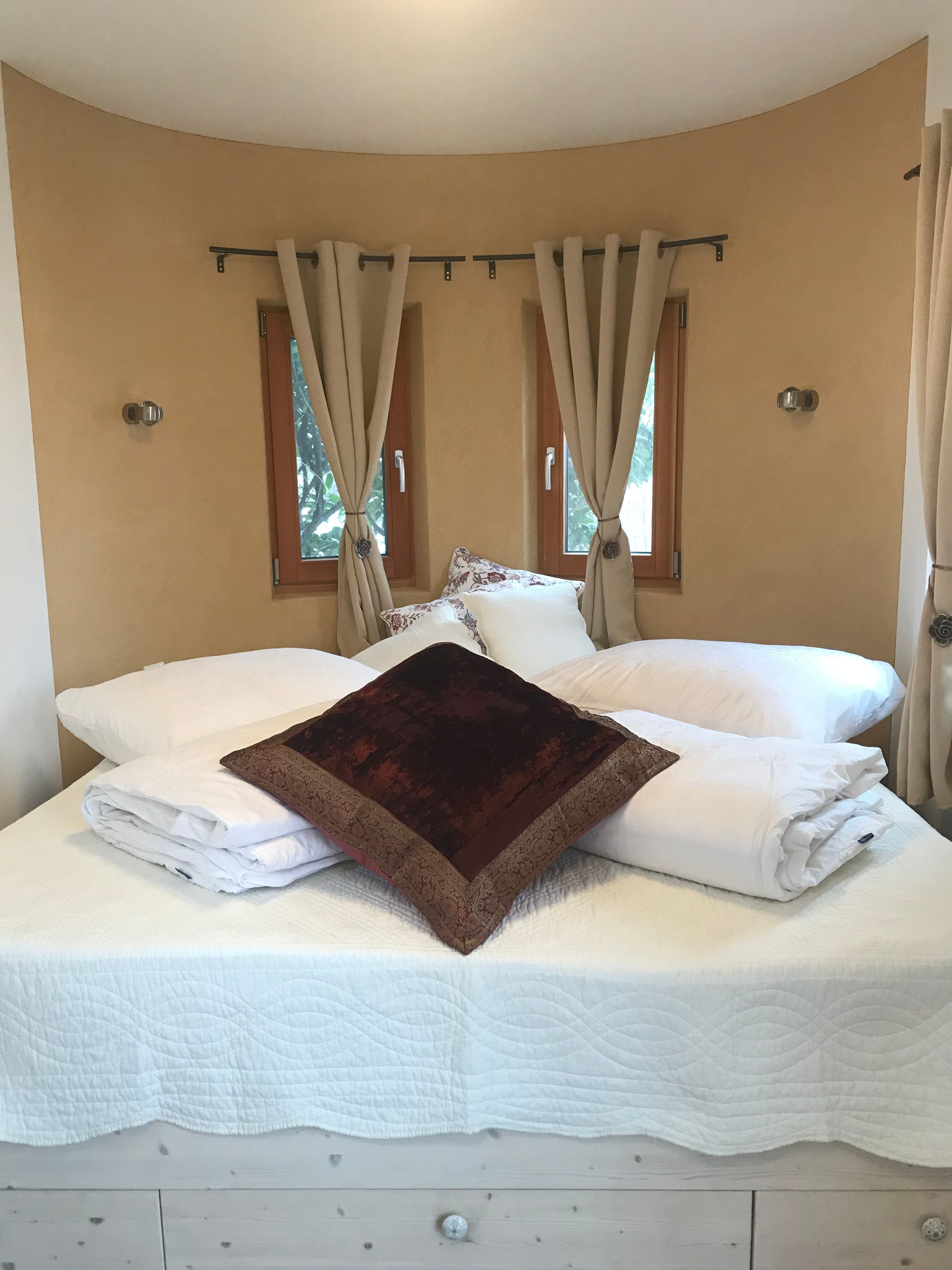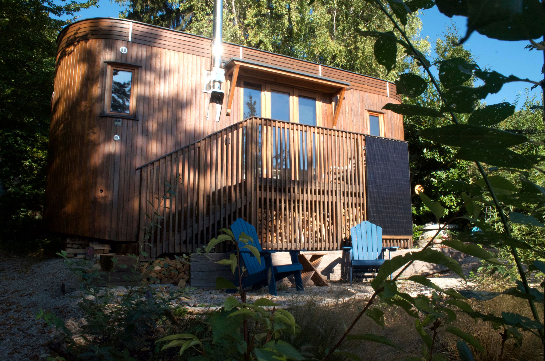 The Tiny Houses Schneeweißchen & Rosenrot on the outskirts of Vienna in the western Vienna Woods offer full comfort in a small space. They are mobile, partially self-sufficient, winter-proof wooden caravans with a garden and terrace. Schneeweißchen has approx. 18m² and is equipped with a photovoltaic system. There is a kitchen with a water-fired wood-burning stove, 2-burner gas hob, bathroom with shower and composting toilet. A super-large double bed offers space for 2 people. Schneeweißchen stands together with Rosenrot in a 600m² fairytale garden. Rosenrot has approx. 33m² and is equipped with a photovoltaic system. There is a kitchen with a water-fired wood stove, 2-burner gas stove, bathroom with shower and composting toilet. A super large double bed for 2 people. The property is located in a quiet cul-de-sac with direct access to the forest. Forest bathing, Wienerwald hiking trails, mountain biking, mountain bike trail center and summer toboggan run round off the stay.