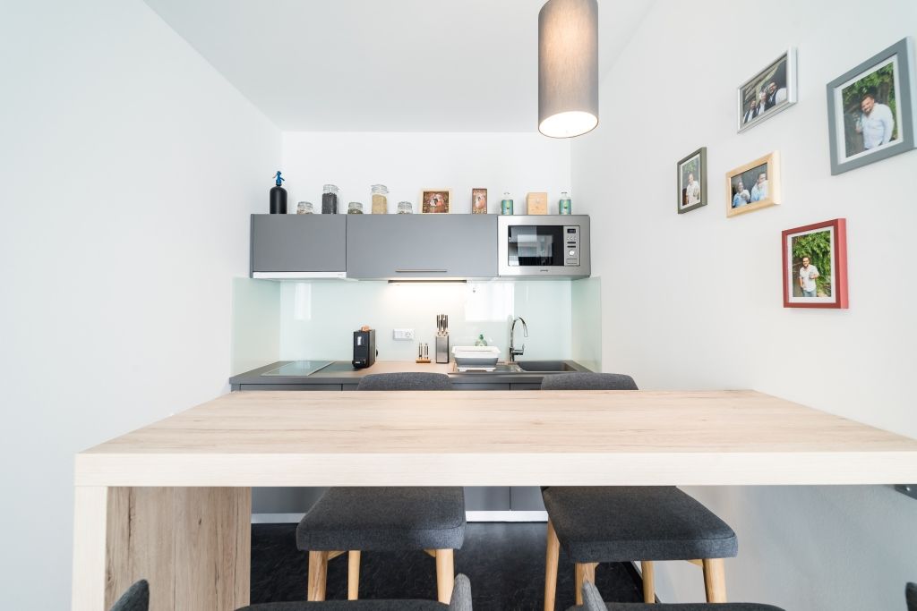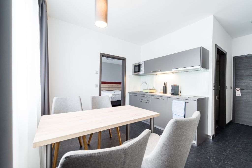 You can expect modern single rooms, double rooms or studios with small kitchens.