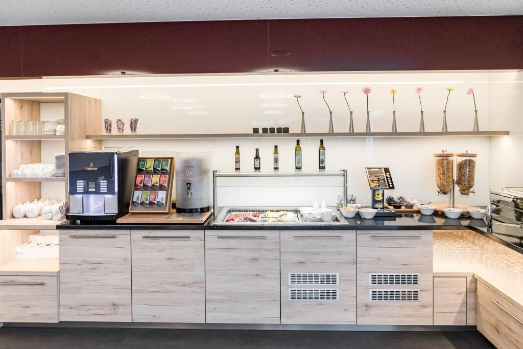 Our rich breakfast buffet with regional products from the immediate vicinity will give you the energy you need for the day. A stylish retro lounge with drinks and snack machine is available for you around the clock.