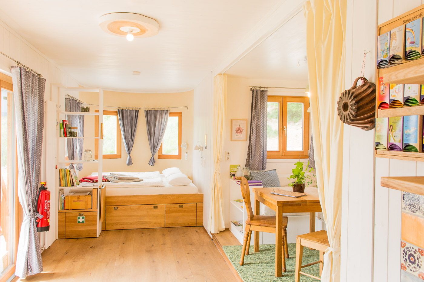 The two new SONNENTOR country lofts, Anna Apfelminze and Hans Hagebutte, are located in the middle of the Waldviertel countryside, nestled in the permaculture garden of the SONNENTOR Frei-Hof.