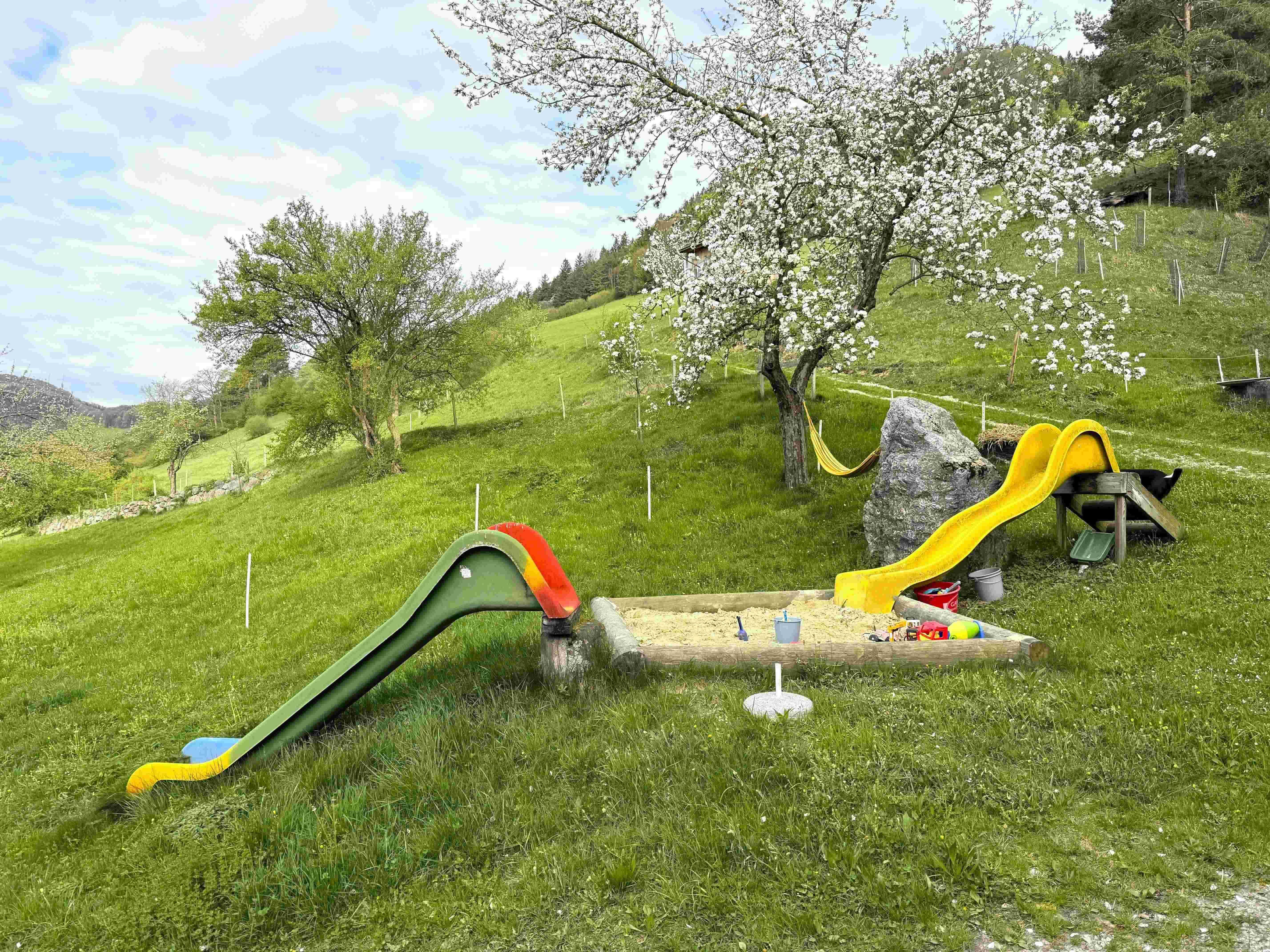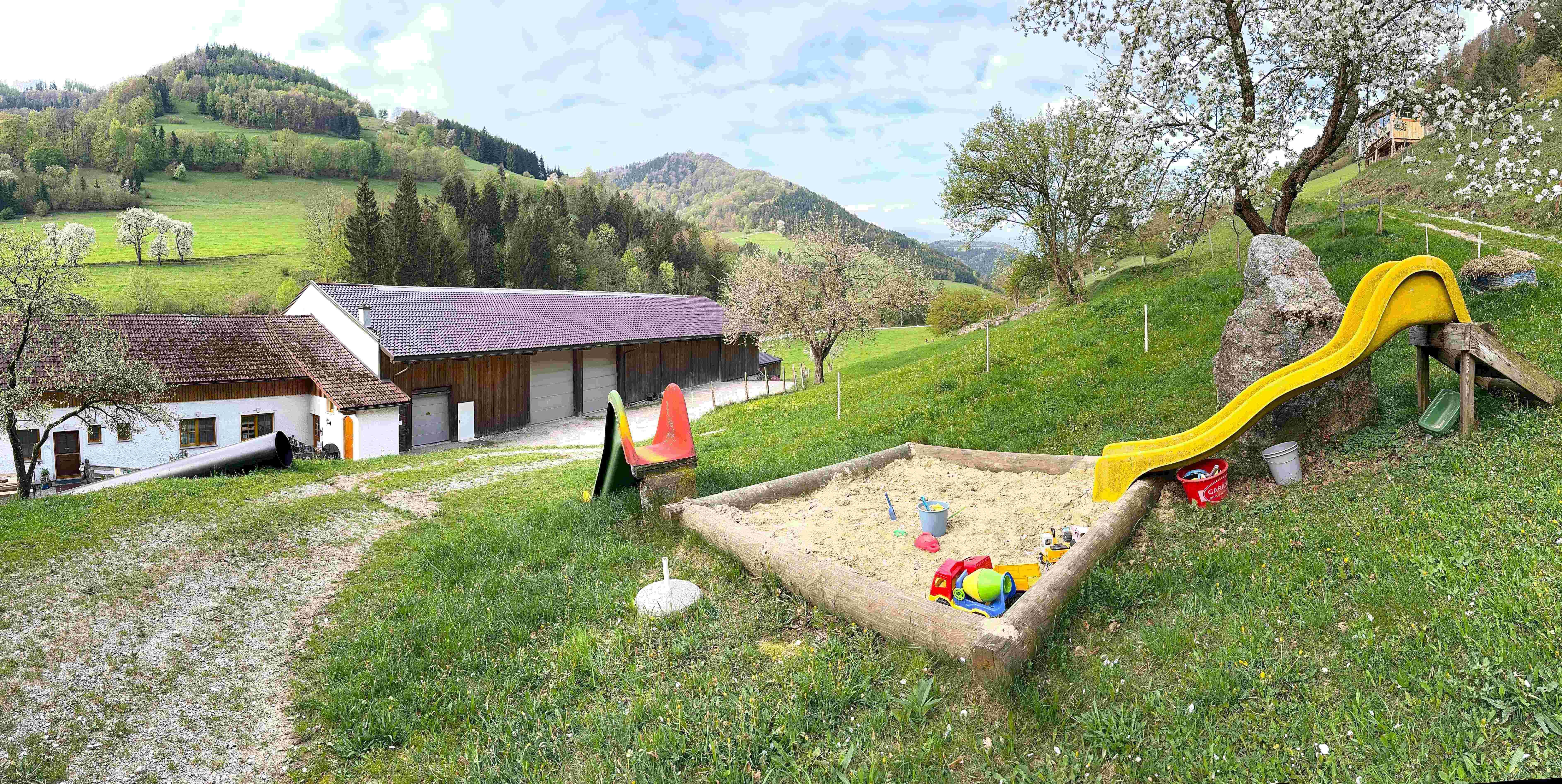 Come on vacation at the "feel-good farm" on the Sunnseit'n - a lively, real farm with organic dairy farming. Get to know life in the countryside with cows, calves, pigs, chickens, cats, bees and the farm dog Bella.