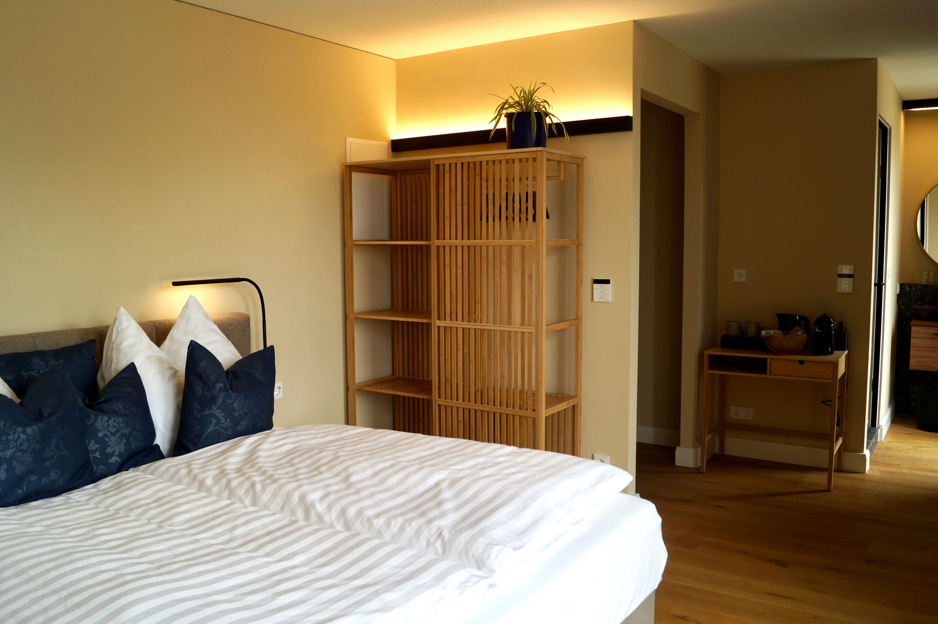 The modern, barrier-free rooms boast a pleasant room climate - at any time of year, thanks to the latest technology. Cyclists have their own storage room with charging facilities and tools. Motorcyclists will find the ideal starting point for numerous winding tours. Vehicles of all kinds can be conveniently parked in the adjacent underground garage.