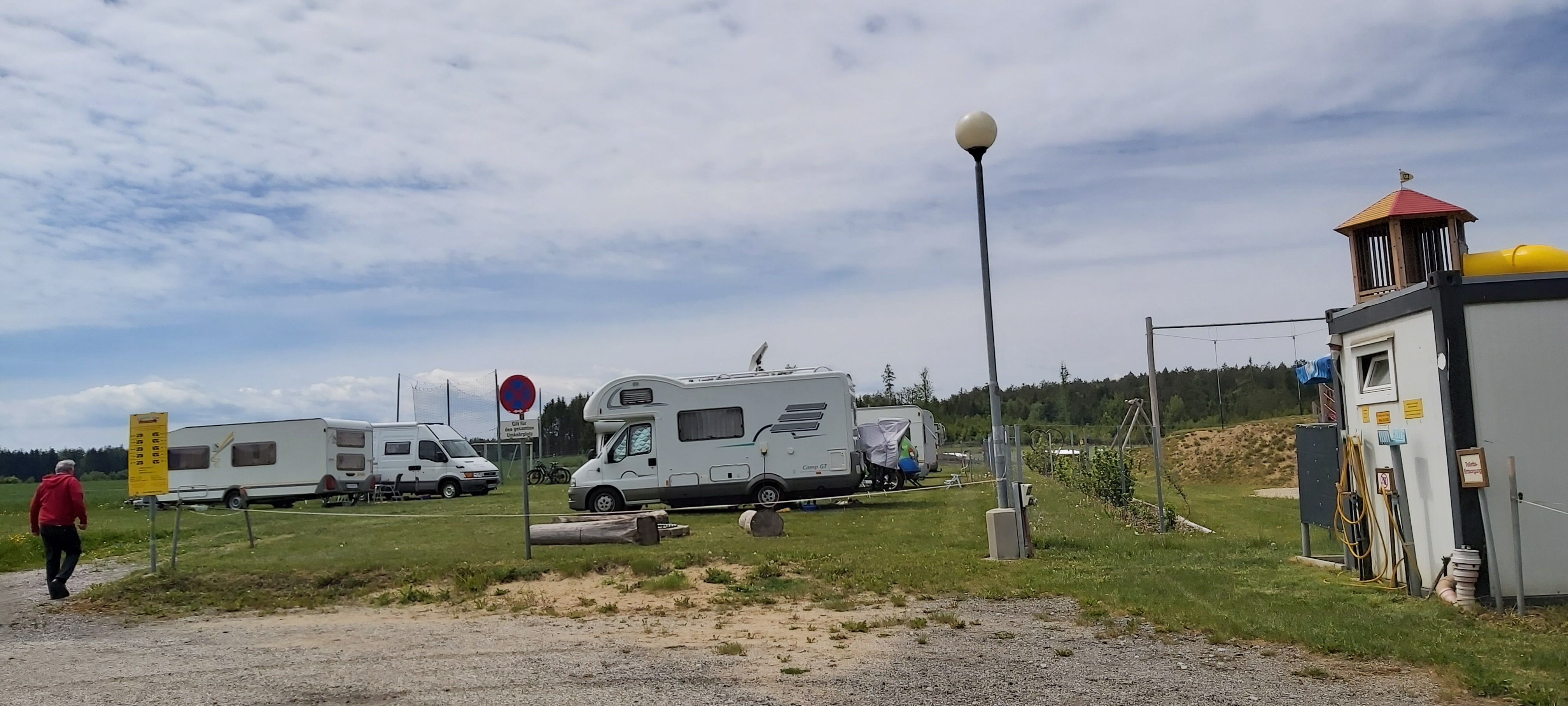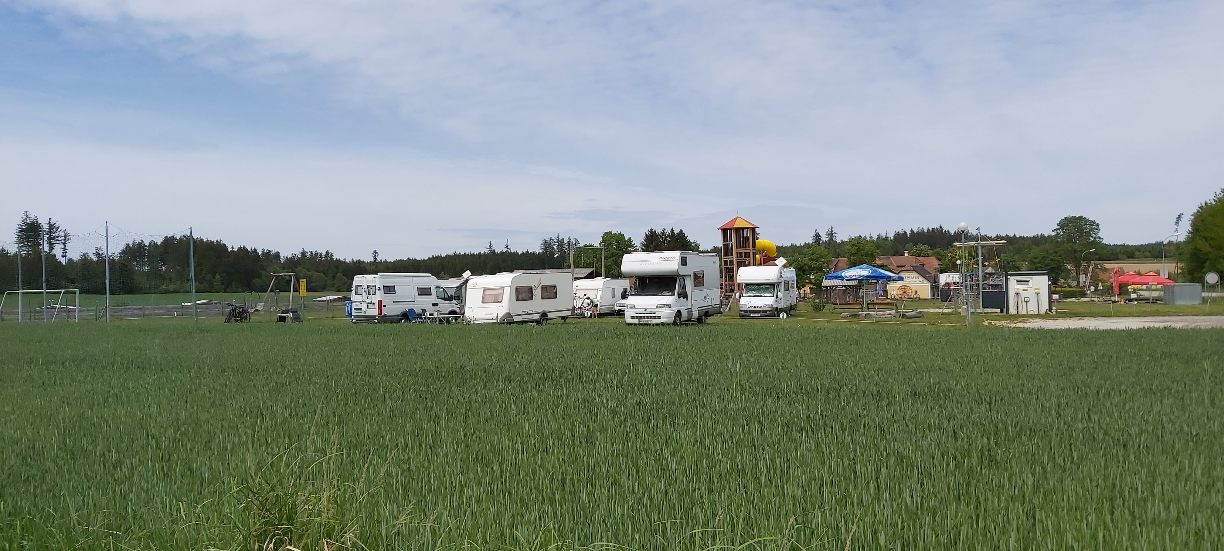 Our fenced pitch offers space for 10 motorhomes and is located right next to the adventure park and the restaurant. The pitch is mostly flat, covered with grass and barrier-free.