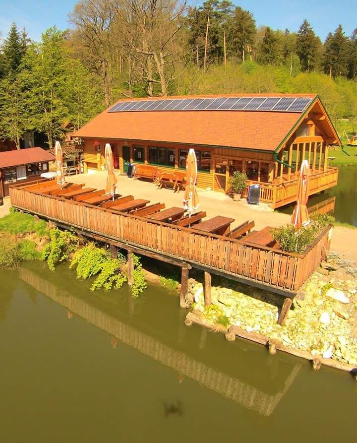 The facility currently comprises seven fishing ponds with a total size of 50,000 square meters, four of which are stocked with trout and char and three ponds with carp, tench, amur, catfish, zander and pike.