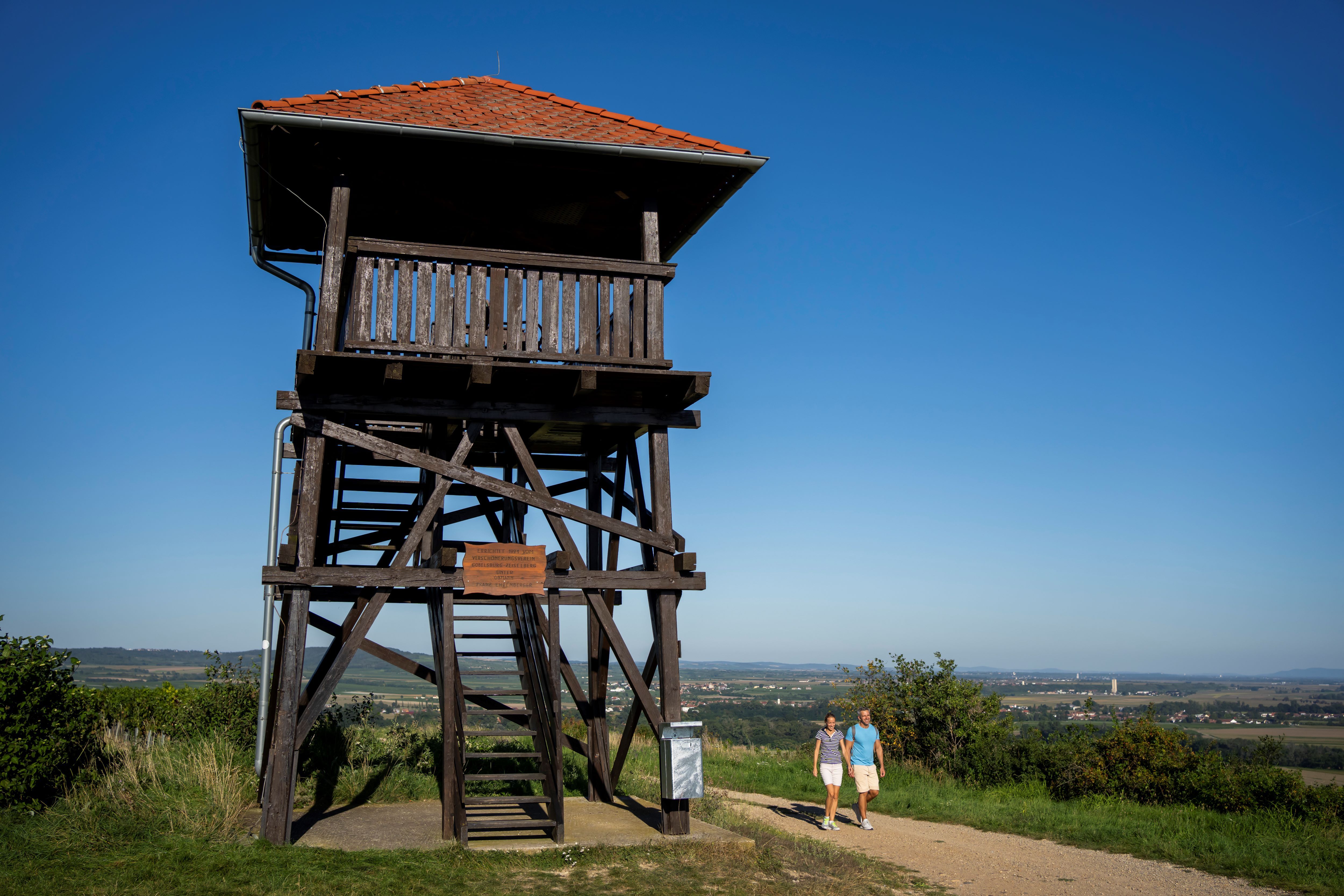 South of Gobelsburg, there is a lookout tower on the Gobelsberg (303 m), which is easily accessible on foot from the center of the village. (The observation tower offers a magnificent panoramic view from the Tulln basin across the Danube valley to the foothills of the Alps. On a clear day, you can even count 37 church spires.