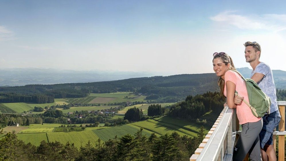On clear days, guests are treated to a panoramic view from various viewing platforms, which extends as far as the Grafenschlager wind turbines and offers an Alpine foothills panorama of around 250 km from the Rax-Schneeberg to the Haller Mauern.