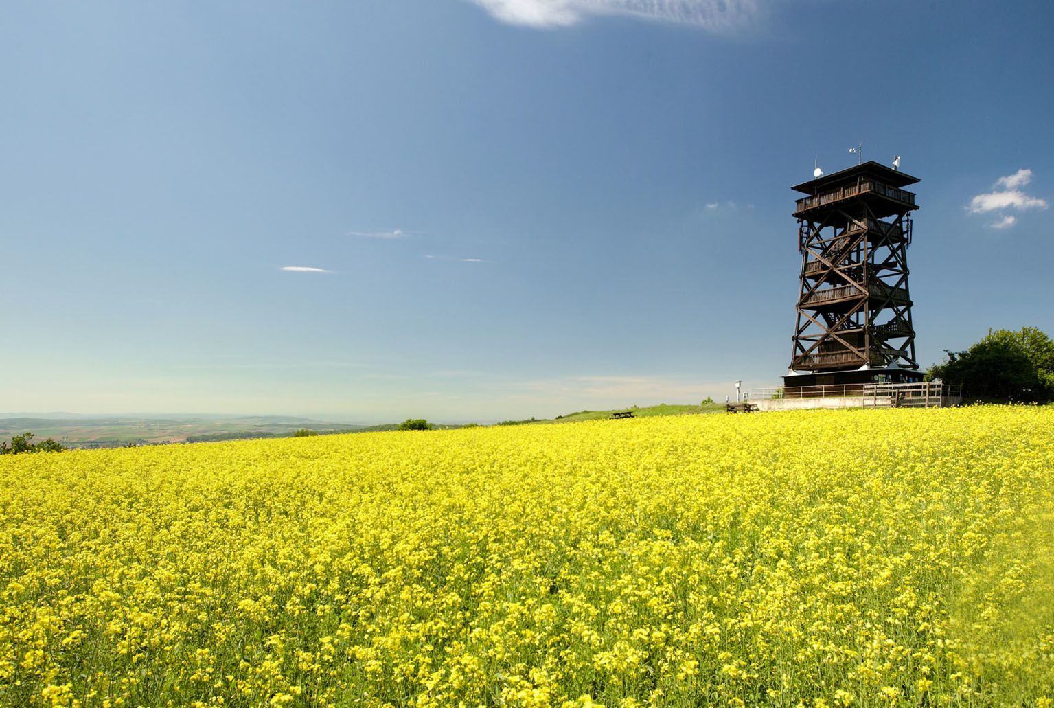The lookout point on the Oberleiserberg is an impressive highlight in the Leiser Berge Nature Park, which lies in the heart of the Weinviertel, just 36 km north of Vienna's city limits. The highest and best-known elevation is the Buschberg at 490 meters. From here, there is a far-reaching view of the gentle, beautiful hilly landscape, which regularly changes its color throughout the year. The rich flora and fauna, a wide range of Excursion destinations and sights, numerous hiking trails and the mountain bike arena reflect the diversity of the region. The Leiser Berge Nature Park, the only nature park in the Weinviertel, is one of the oldest in Lower Austria and invites you to linger and enjoy. However, the Oberleis viewing platform is closed from November to March. Nevertheless, the Leiser Berge Nature Park offers a variety of events and activities throughout the year that highlight the beauty and diversity of nature.