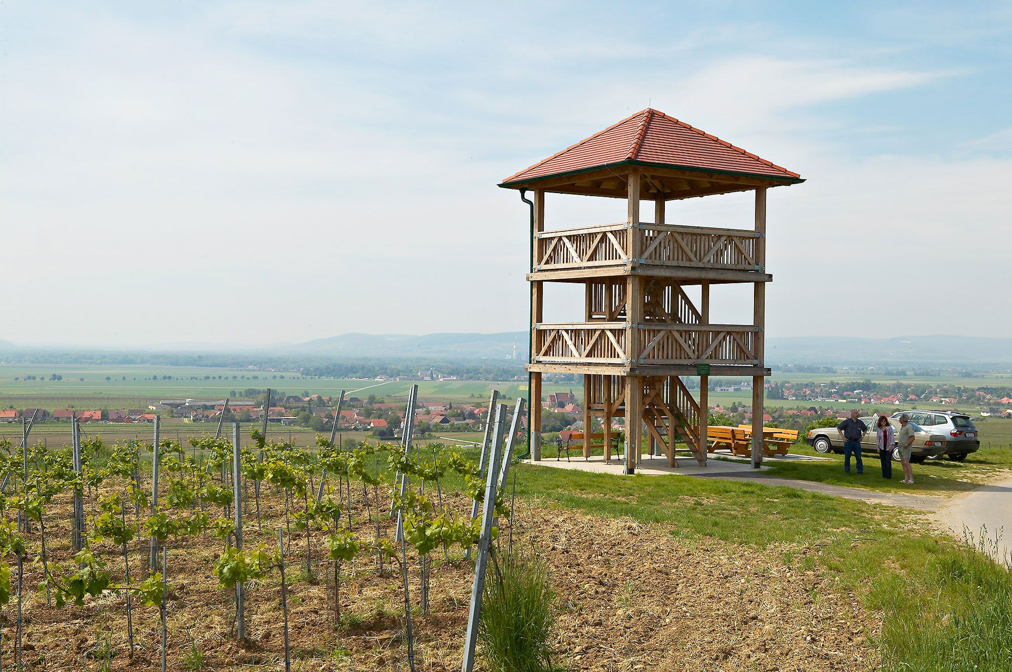 Built in 2004, the viewing platform on the Haide in Engabrunn lies at around 290 m and is approx. 10 m high. On a clear day, you can enjoy the view of Schneeberg, Rax and Ötscher. From here you also have a view of five wine-growing regions in Lower Austria: Kamp Valley ("Kamptal" in German), Donauland, Traisental, Wachau and Krems Valley ("Kremstal" in German). Grafenegg Castle is also clearly visible.