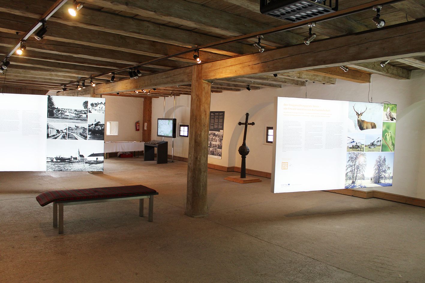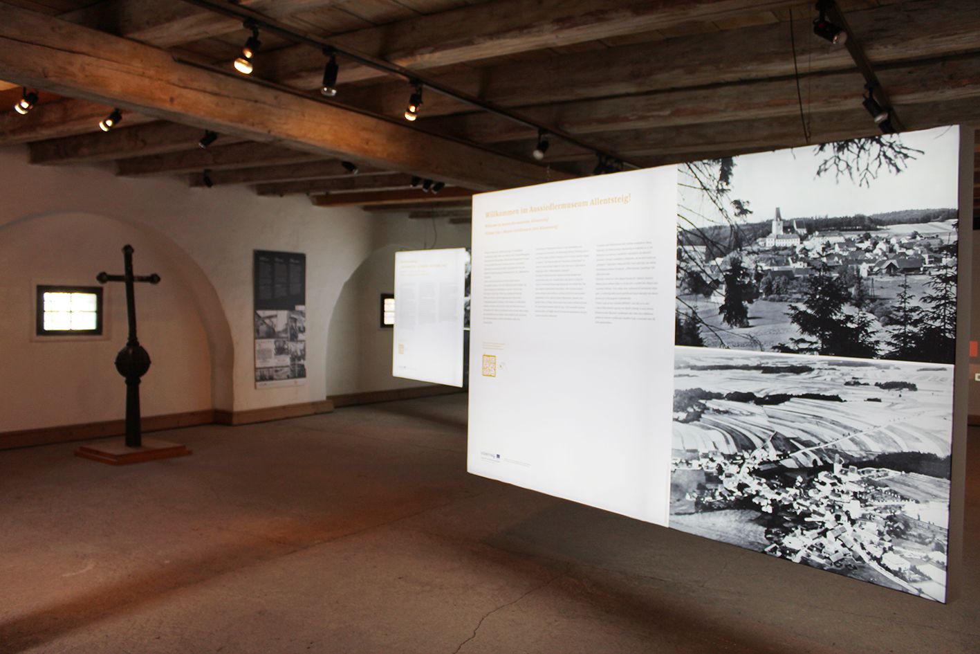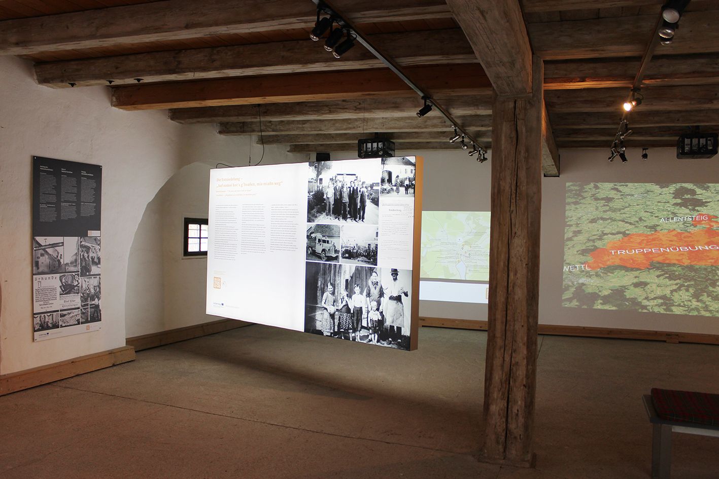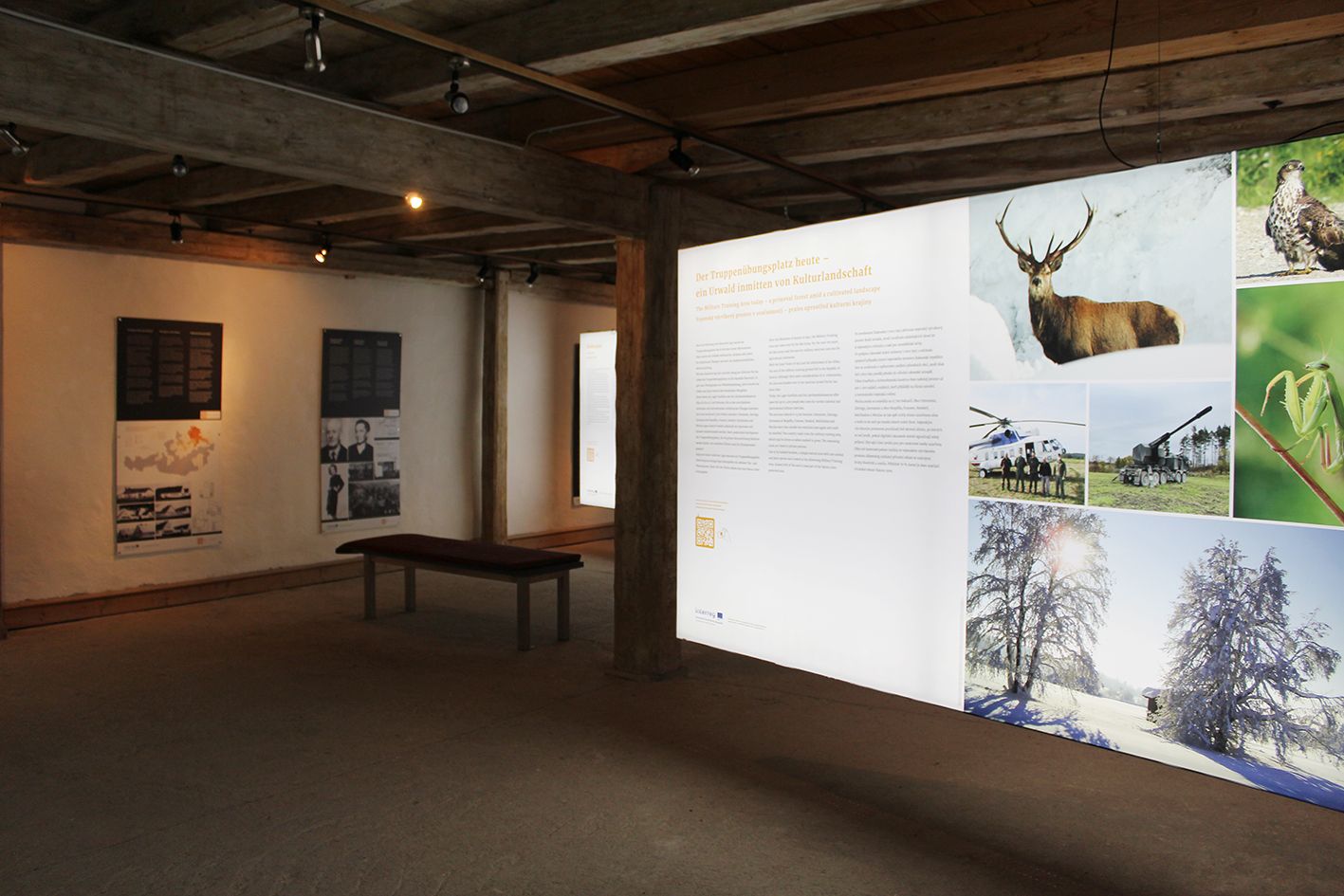 The central theme is still the resettlement in the area of the military training area. Seven stations are dedicated to resettlement in many different areas. For example, they show what people's lives were like before the drastic events. Central points are the annexation to the German Reich and, of course, the resettlement of the population. Replacement houses, advance payments and the fates of the people are also shown. The nature of the military training area and the TÜPl as a Natura 2000 area is another chapter. Interviews, sound recordings and films illustrate the eventful history of the region. Additional virtual content such as photos, videos and texts can be displayed on the screen using QR codes that can be scanned with a cell phone. Entry is also via QR code and is free of charge. The Aussiedlermuseum is open daily from April to October from 9 am to 6 pm.