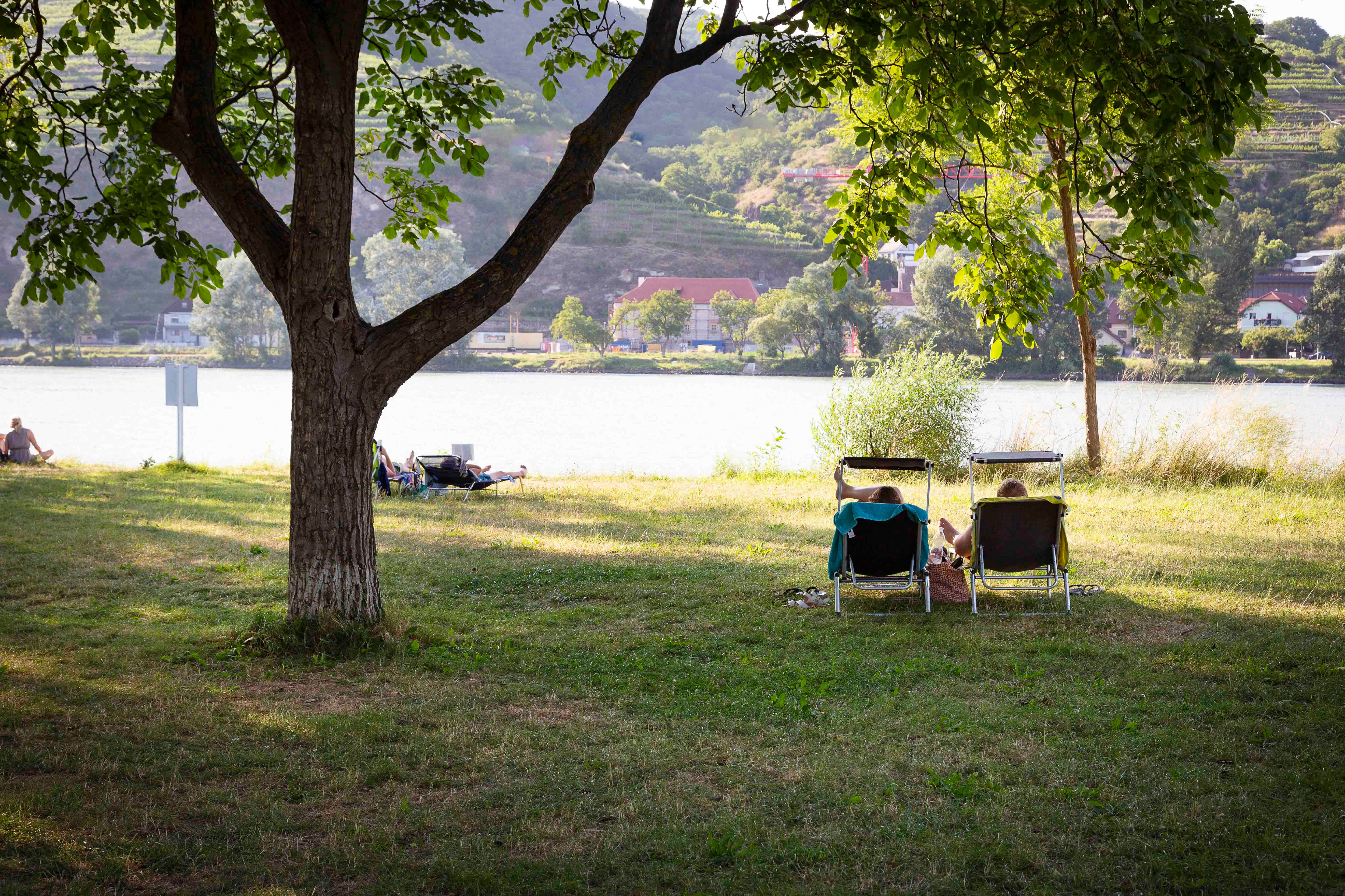 The public bathing beach in Mautern bei Krems is located near the Mauten Danube bridge and the main road. A large sunbathing lawn with shady trees invites you to make yourself comfortable. Swimming in the Danube river with its current is free of charge and at your own risk. Dogs are allowed and a toilet container is available at the beach café.