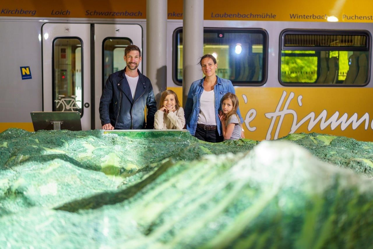 On a guided tour, you can visit all the buildings and the station and take a look behind the scenes (advance booking, minimum 6 people). The Ötscher model in the station hall shows the region around the Ötscher in miniature. The large playground provides fun and games, the relaxation loungers invite you to relax.