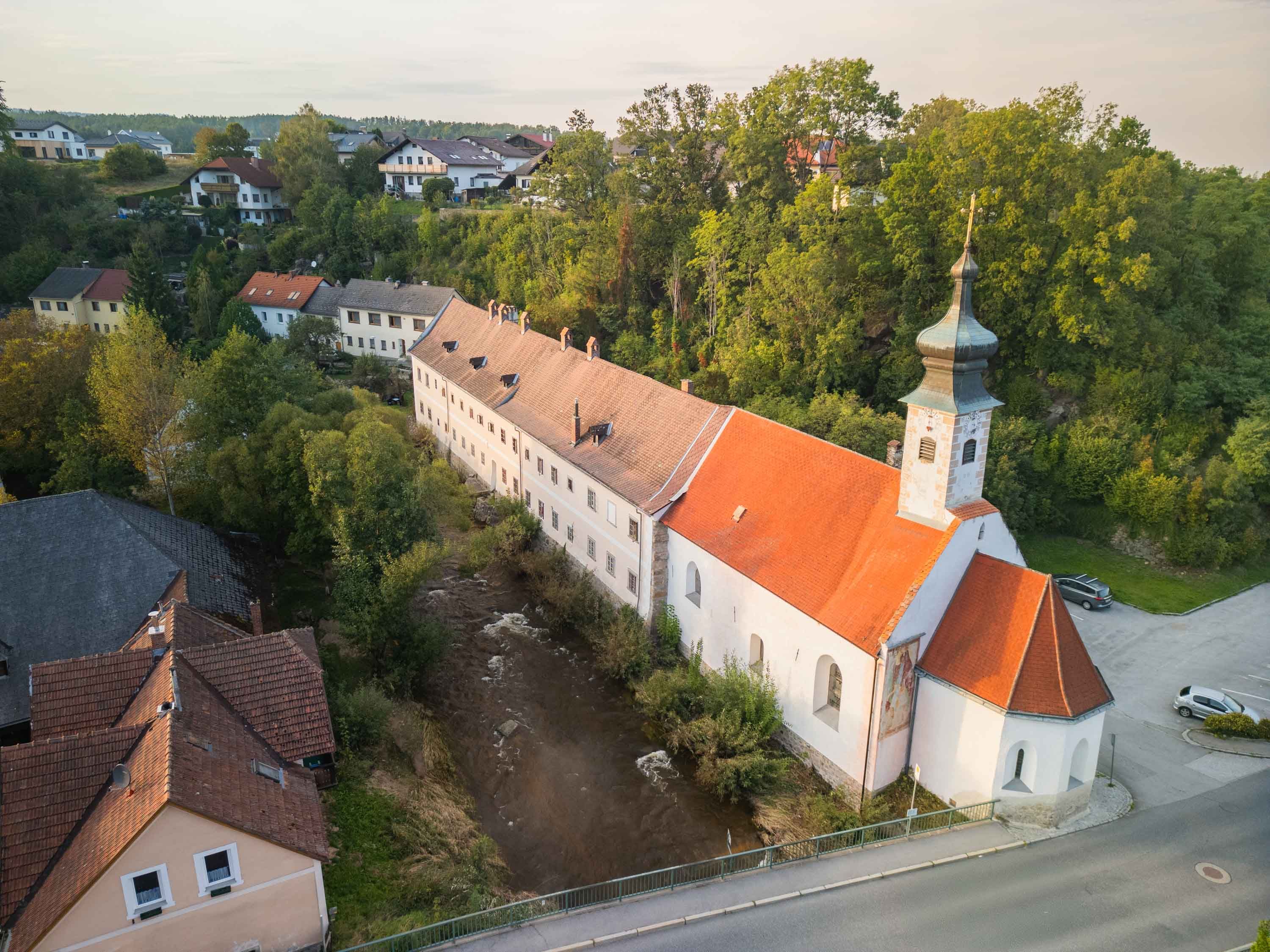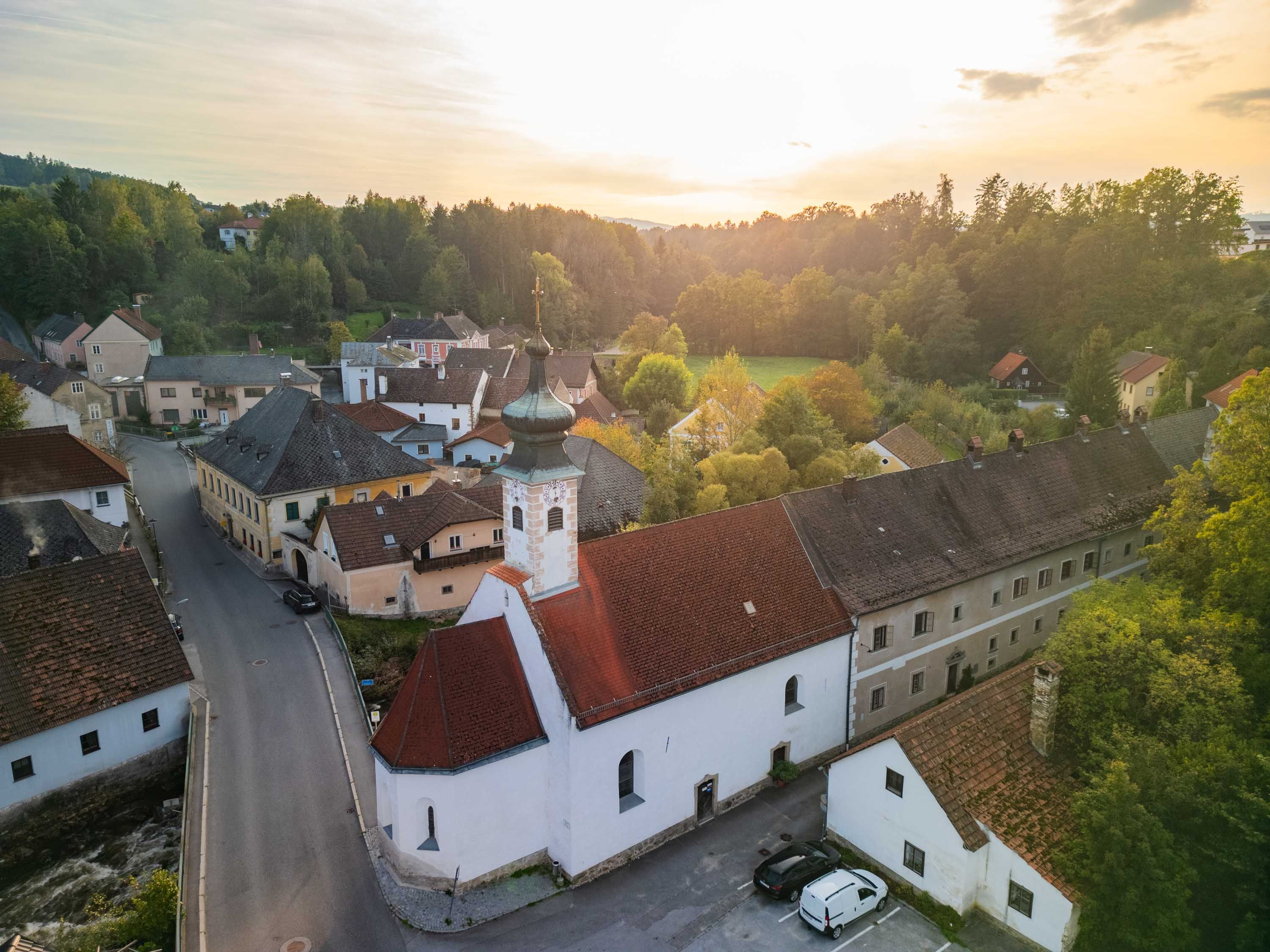 At the foot of the town of Weitra - in the so-called Ledertal - you will find the Bürgerspital with its hospital church. The Lainsitz ripples peacefully past what is said to be the oldest stone house in Weitra.