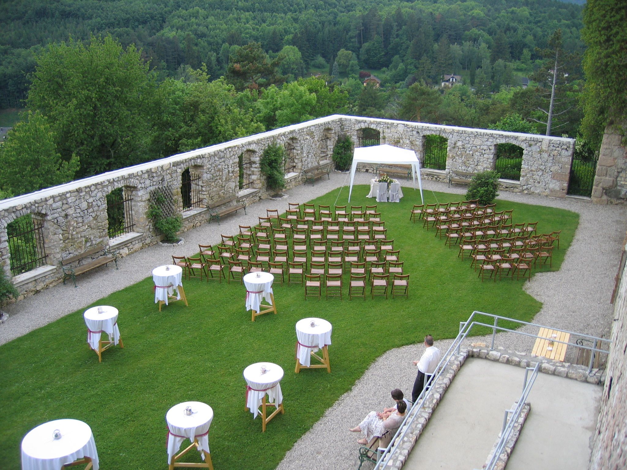 In the following years, the central part of the castle was renovated and converted into a modern event center. The castle hall, which is accessible by elevator, was opened in September 2018. Since then, the castle and church have been available for events of all kinds, such as church and civil weddings, concerts, theater, birthday parties and company celebrations. The event center with the outdoor areas castle terrace, Lindenhof, Gwölb Burgsaal and catering kitchen can be rented by anyone for various occasions.