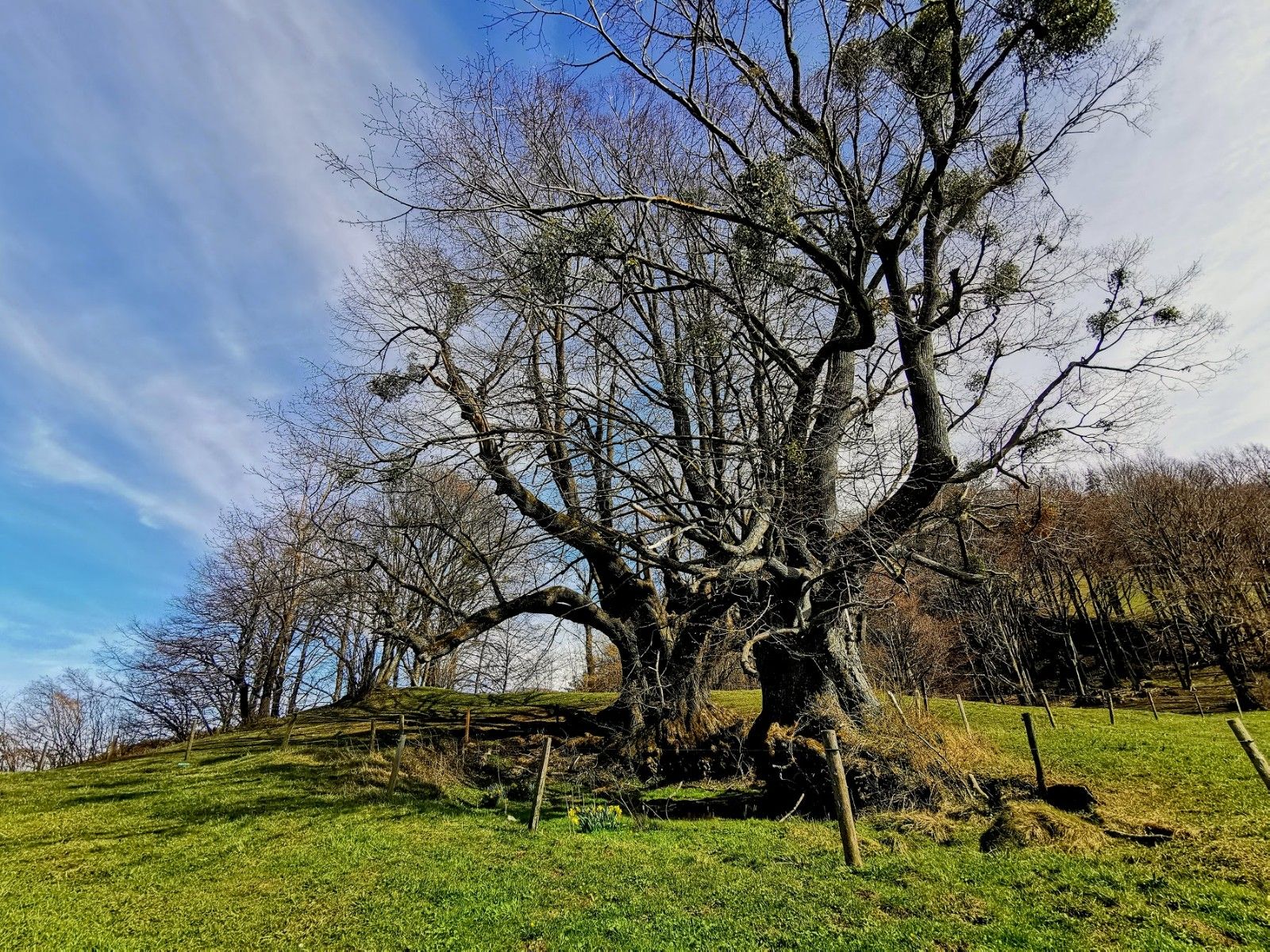 Two impressive lime trees stand on a panoramic hill near Eschenau. It is no longer possible to determine their exact age, but it is estimated to be between 600 and 700 years old. The trunks are hollowed out and you can even climb into the crown of one of the two trees. Between the two trees is a small pond, also known as the "Eternal Tear". The name is no coincidence: The "Eternal Tear" never dries out due to the loamy, dense soil.
