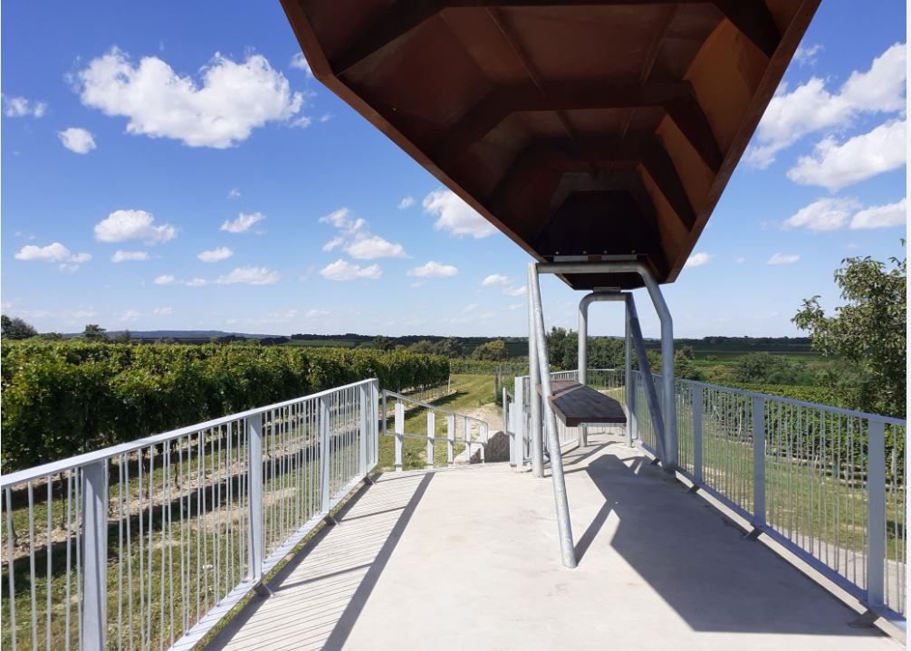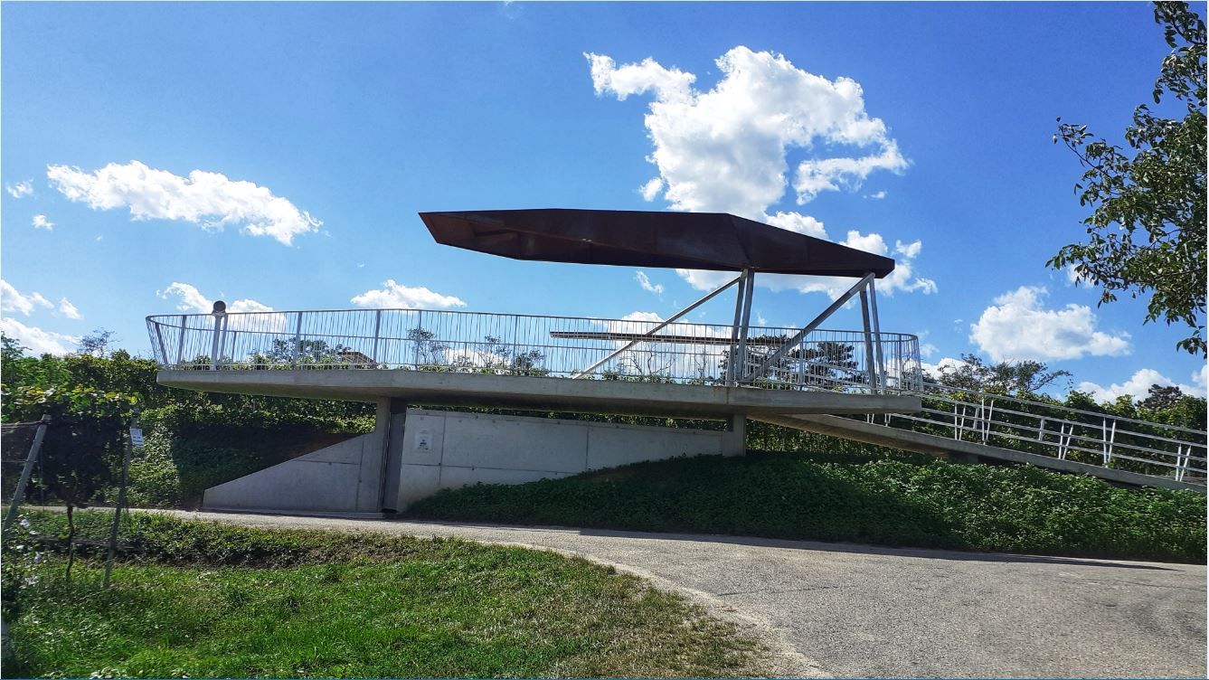 Visitors can reach the viewpoint via well-marked hiking and cycling trails such as the "Tut-Gut-Weg". The platform offers an impressive panoramic view over the vineyards, the Tullnerfeld and as far as the Danube. With seating and a bar, it is ideal for picnics or tastings - a popular meeting place and a real highlight for nature and wine lovers.