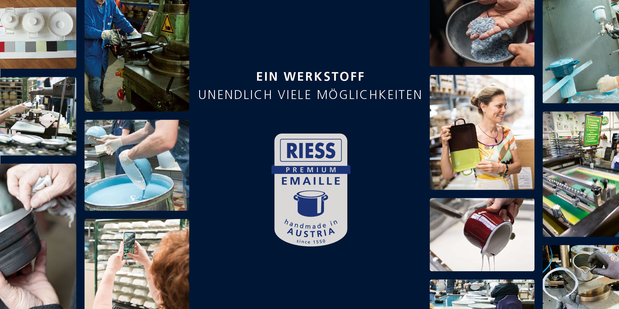 Known for high-quality premium enamel quality certified by the European Enamel Authority and the Green Brand Organization, the company produces enamel products for kitchen, household and living, enamel signs and tailor-made B2B products with green energy from its own hydropower. The Riess product range includes over 900 shapes for cooking, frying, baking, serving and storage and is exported to over 35 countries worldwide.