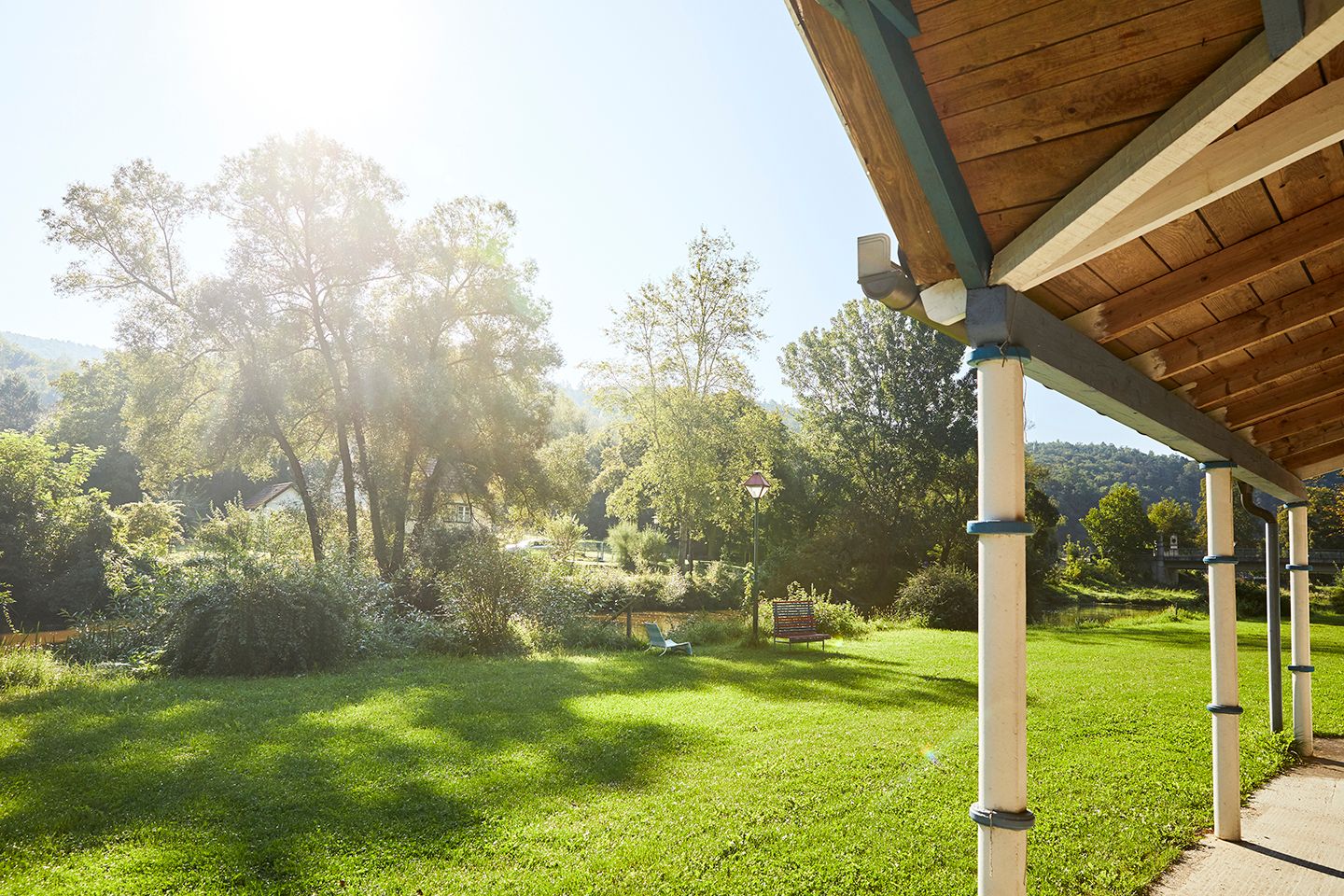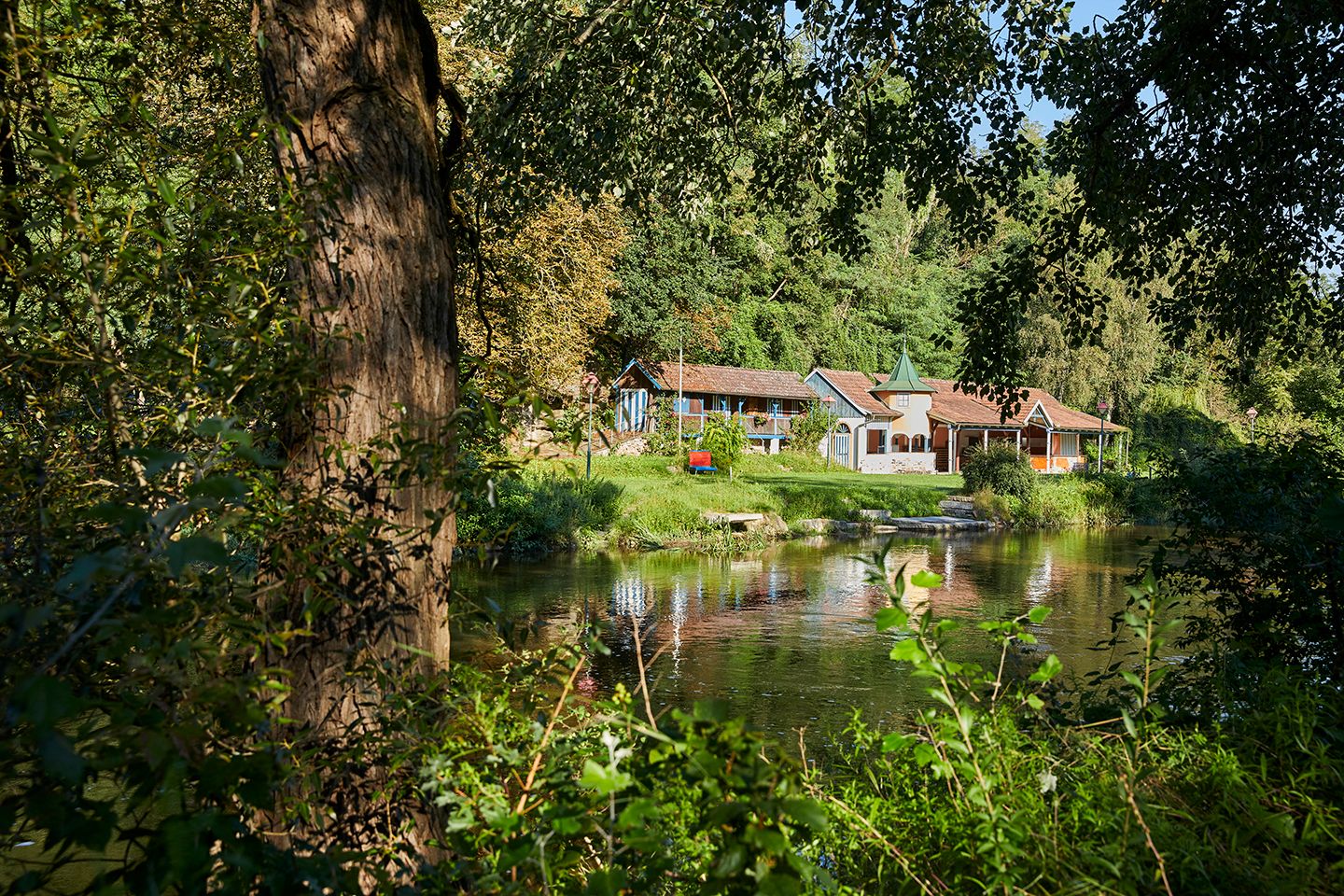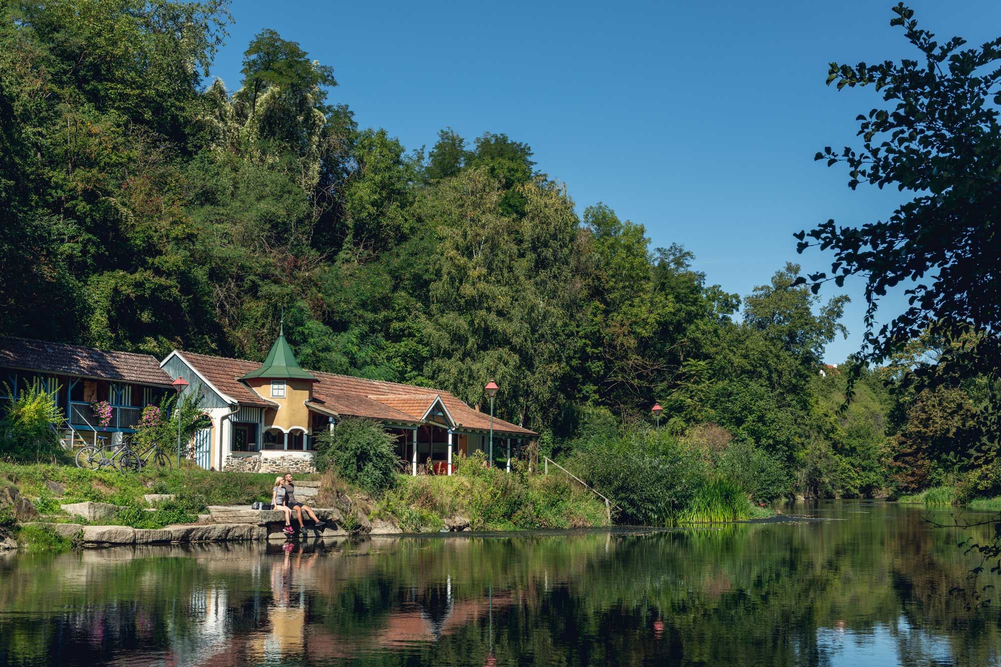 For around a century, the Kamp was part of Stiefern's essential "working capital", as it offered the guests of the former summer resort a highly frequented "river bathing facility". Although the traditional bathing romance ended in the 1970s at the latest, the idealistic value of the bathing area continues: many people still fall back on the bathing function as a tradition, and as the Kamp Valley ("Kamptal" in German) cycle path leads almost directly past the former river baths, cyclists also make use of the opportunity to cool off. Over the course of time, many innovative attempts at re-use have been made. On the initiative of the Stiefern Beautification Association in particular, a lot of contemporary infrastructure has been added to the bathing area: WC, children's playground, publicly accessible barbecue, benches for resting, well-kept lawn, furthermore an information board of the "Kamp Valley ("Kamptal-Schönberg" in German) Nature Park. On the initiative of the Stiefern volunteer fire department, the "Badwiesn" has also established itself as a popular festival site. These remarkable achievements, which were largely achieved on a voluntary basis, literally went down the drain with the floods of August 2002. Thanks to the members of the volunteer fire department and the beautification association, the area was quickly redesigned and rebuilt according to the plans of Hundertwasser architect Peter Pelikan, who is based in Stiefern. After countless volunteer efforts, the Kampbad is a real eye-catcher and is once again a popular place to swim and spend time. The festival grounds are fully equipped and the infrastructure can also be hired privately.